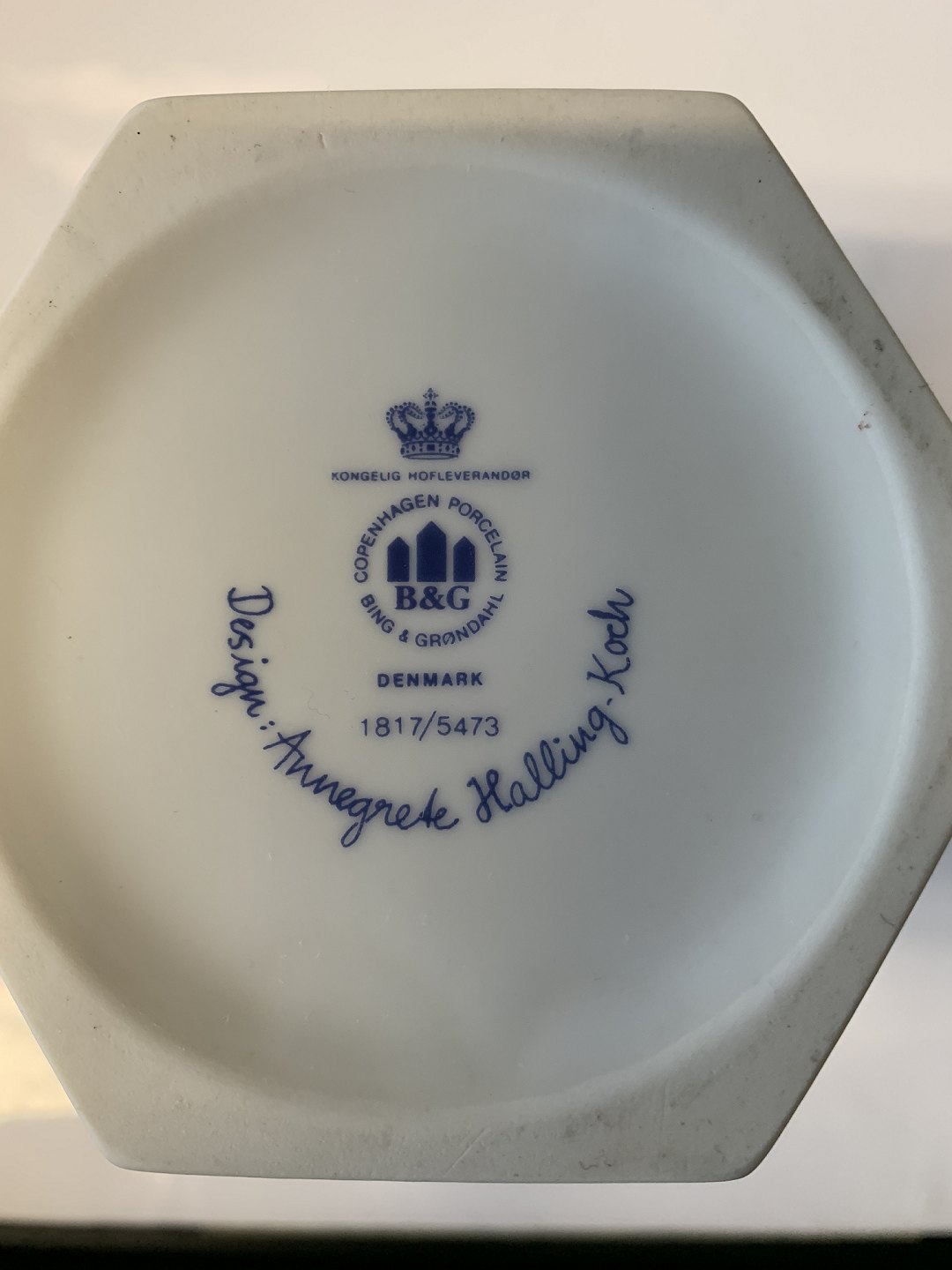 Bing & Grondahl B&G 6-sided Vase Design Annegrethe Halling Koch Dec. No. 1817-5473 Blue - Prism Height 20 cm Width 9 cm Beautiful and complete condition.