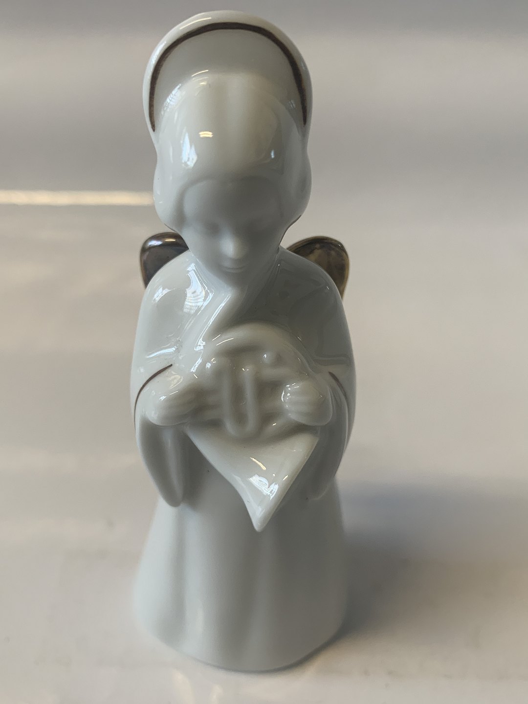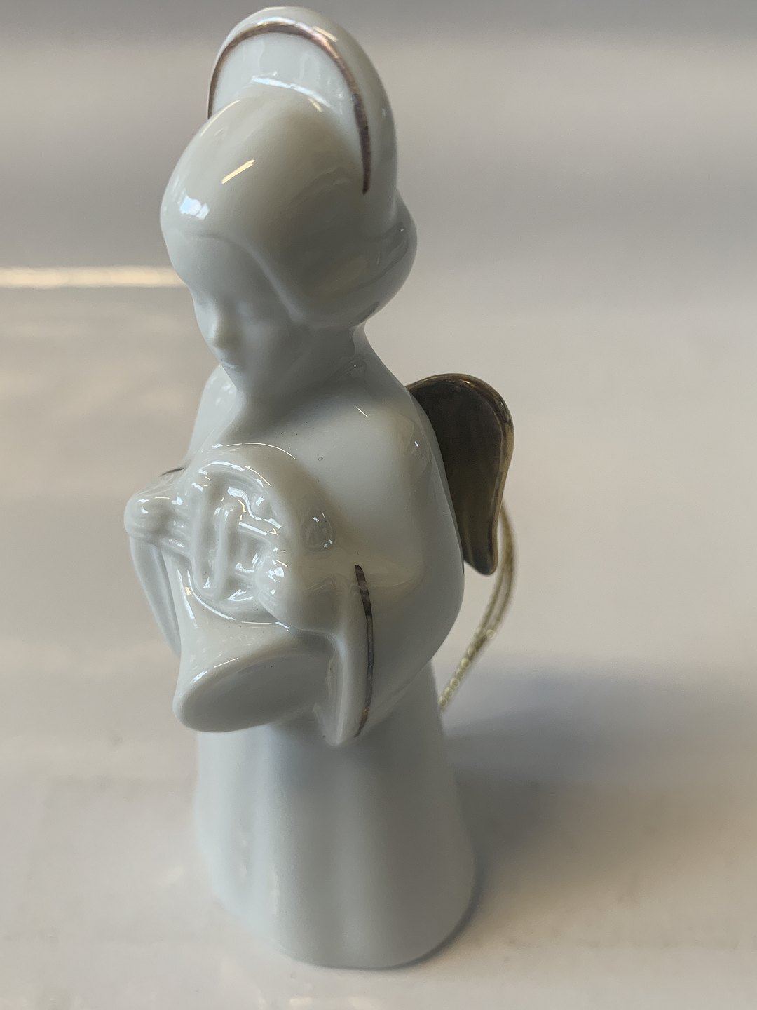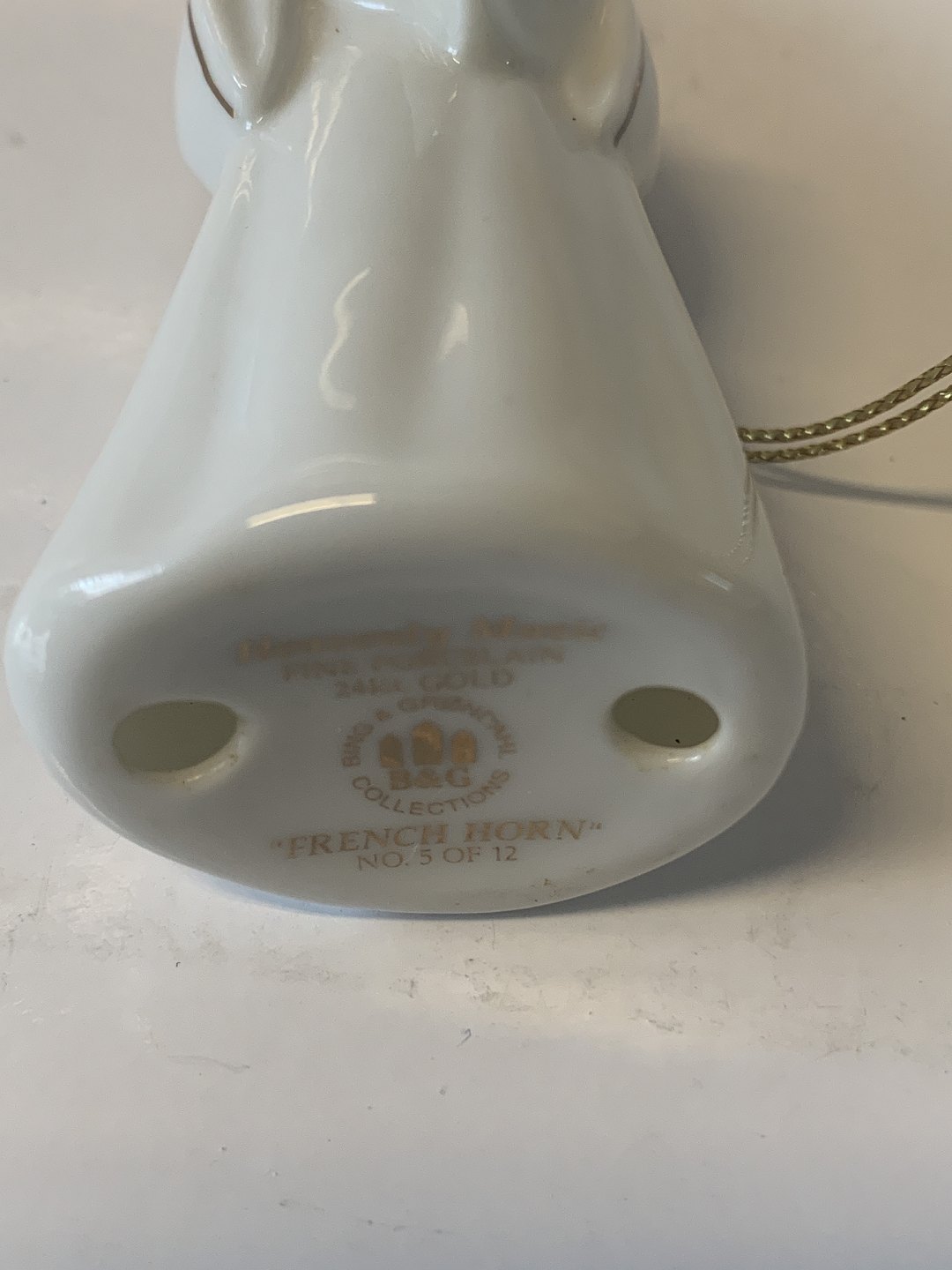 Bing & Grøndahl. Heavenly Music. French Horn No. 5 af 12. Hvid porcelæns engel med guld staffering og guldvinger (24 karat). Serien hedder " Engel med Instrumenter" og består af 12 stk.