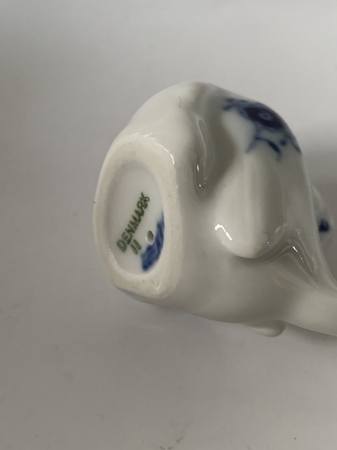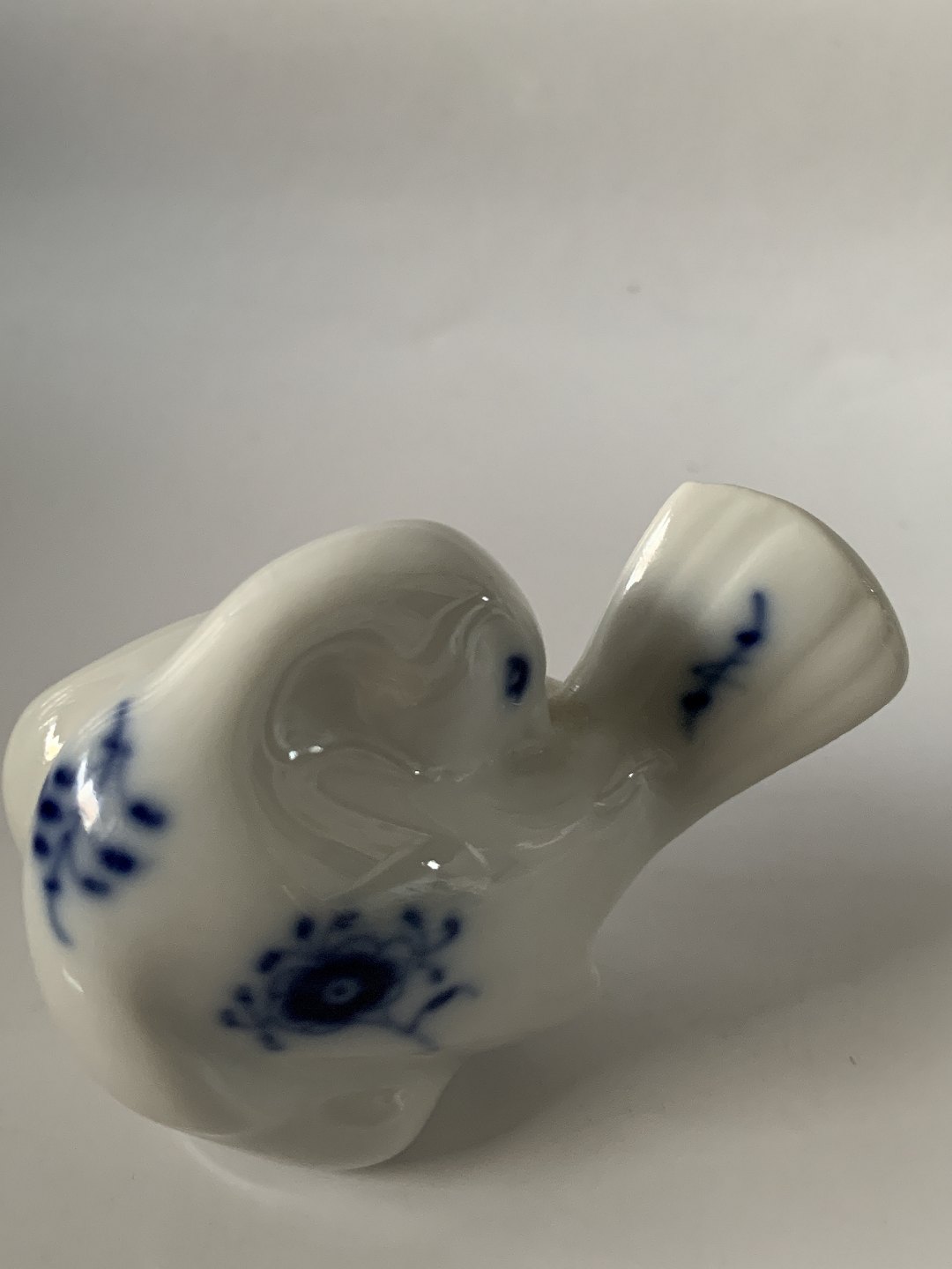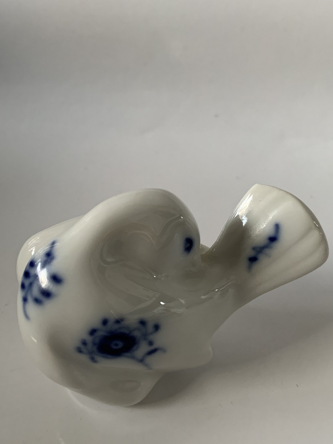 Royal Copenhagen Musselmalet, miniature figur af fugl (spurv). 1. sortering. Længde 5,5 cm. Perfekt stand uden fejl.