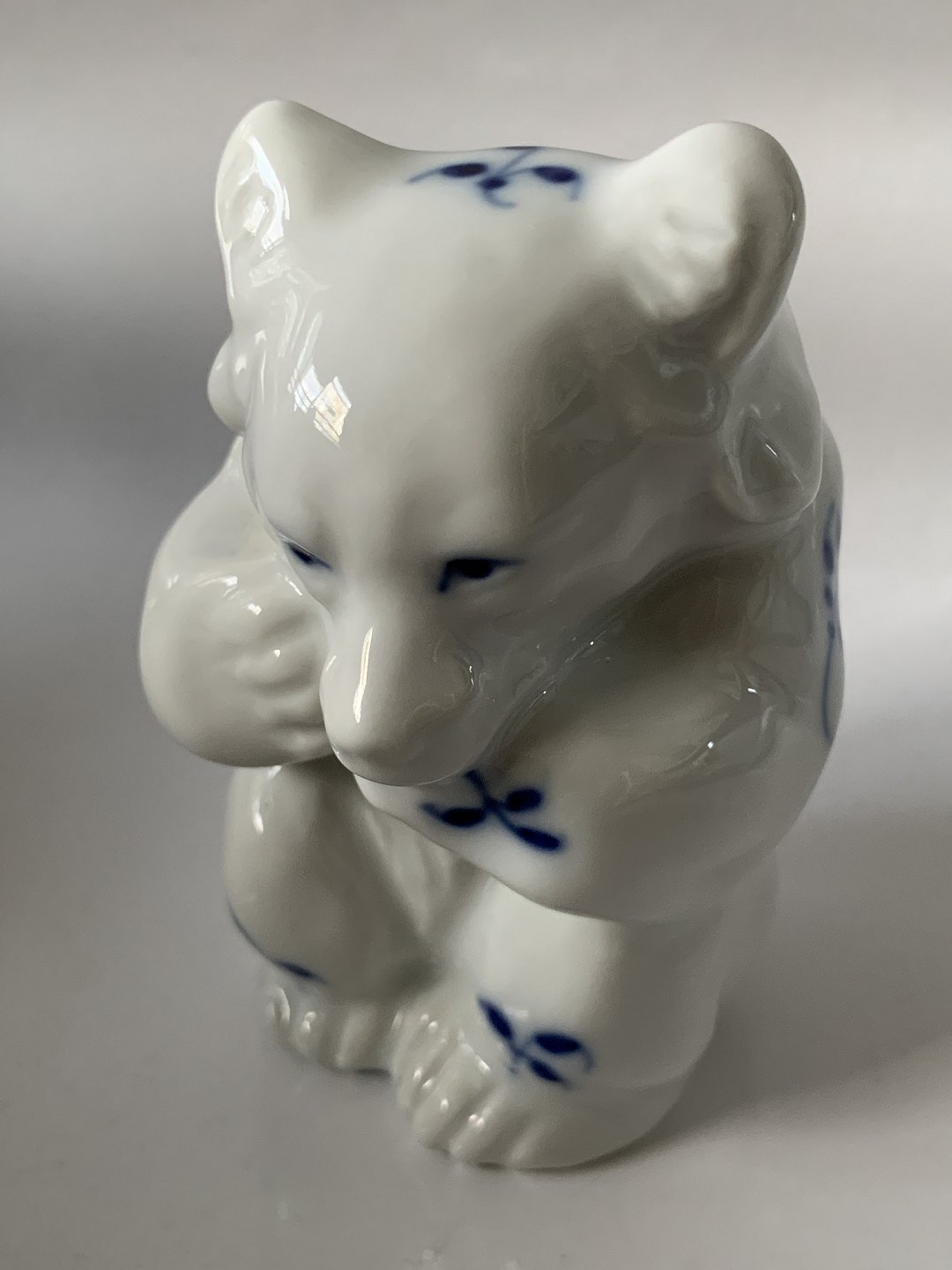 Royal Copenhagen Musselmalet Riflet, figur af Bjørn. 1. sortering. Højde 8,5 cm. Perfekt stand uden fejl.
