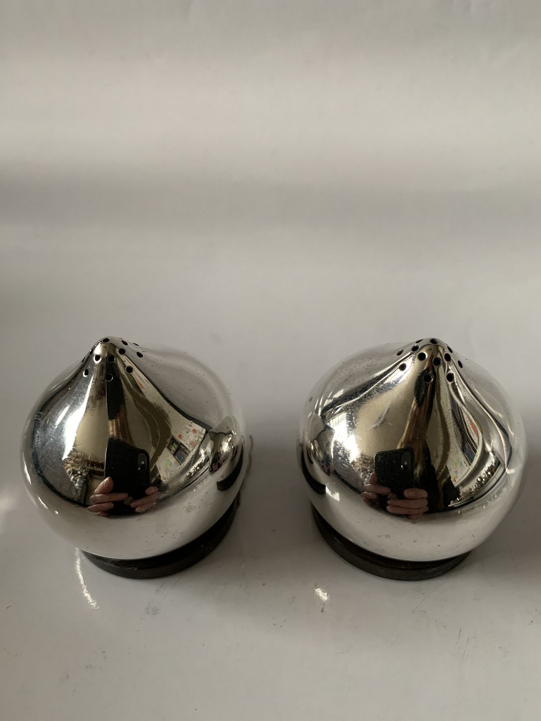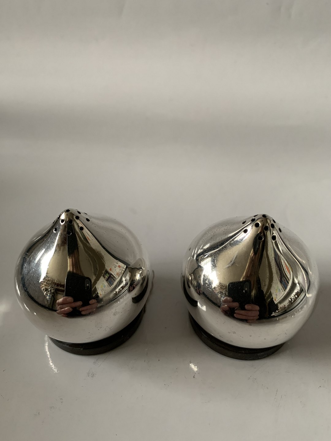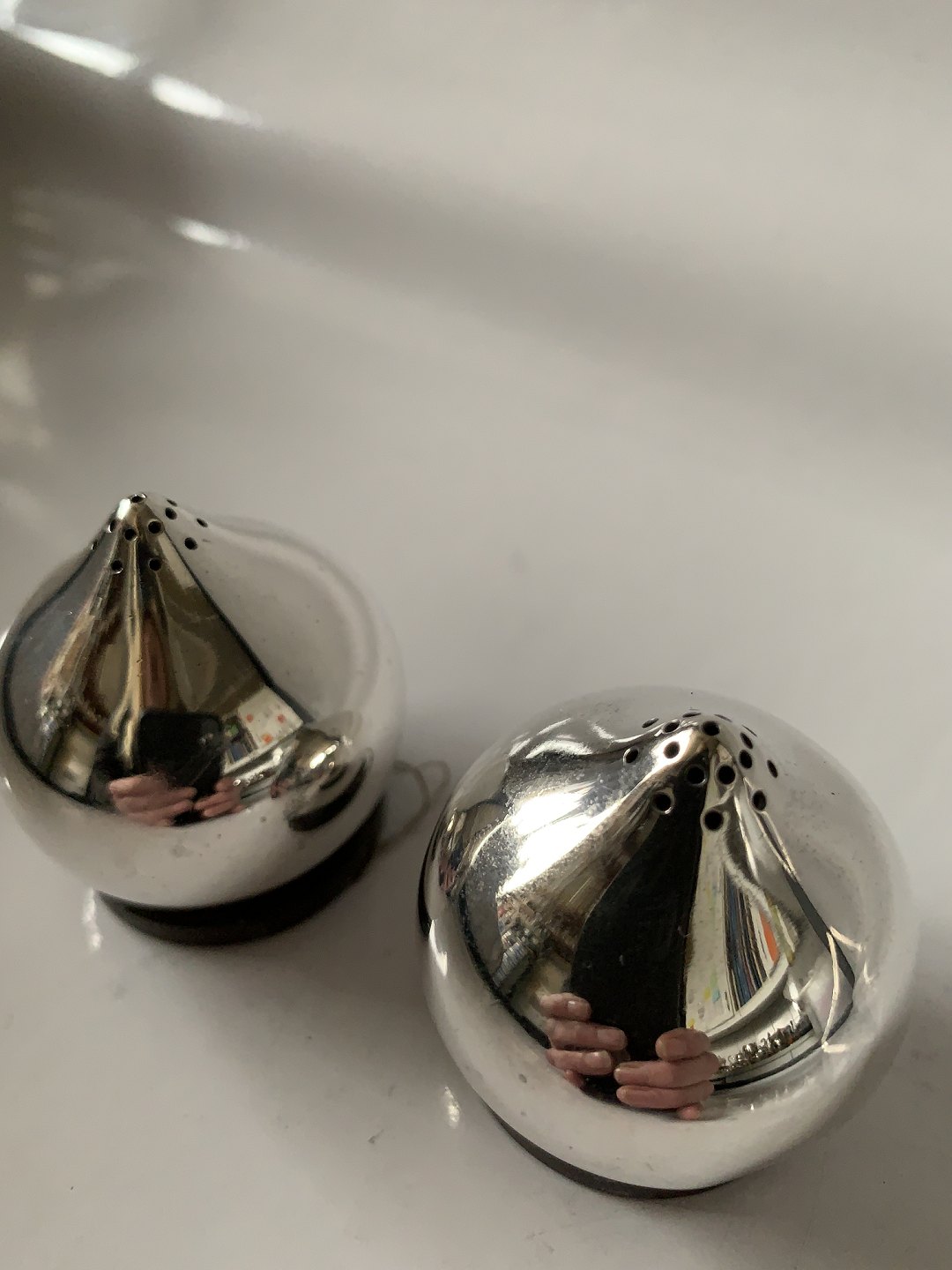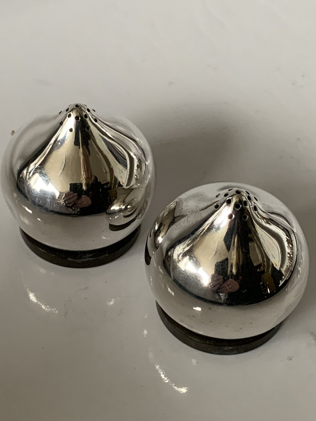 Salt & Peberbøsse Sterling sølv Stemplet: Aage Weimar, Sterling Silver, Denmark Mester: Aage Weimar Højde 4,5 cm. Lille bule nede på dem se foto ellers flot og velholdt stand. Prisen er for sættet.