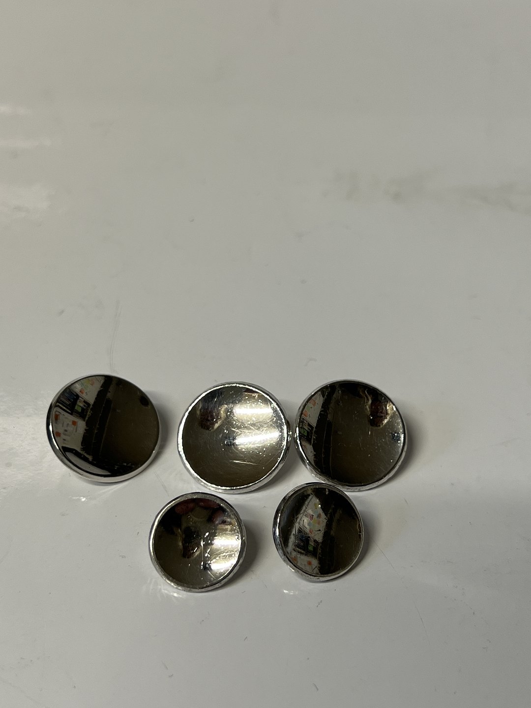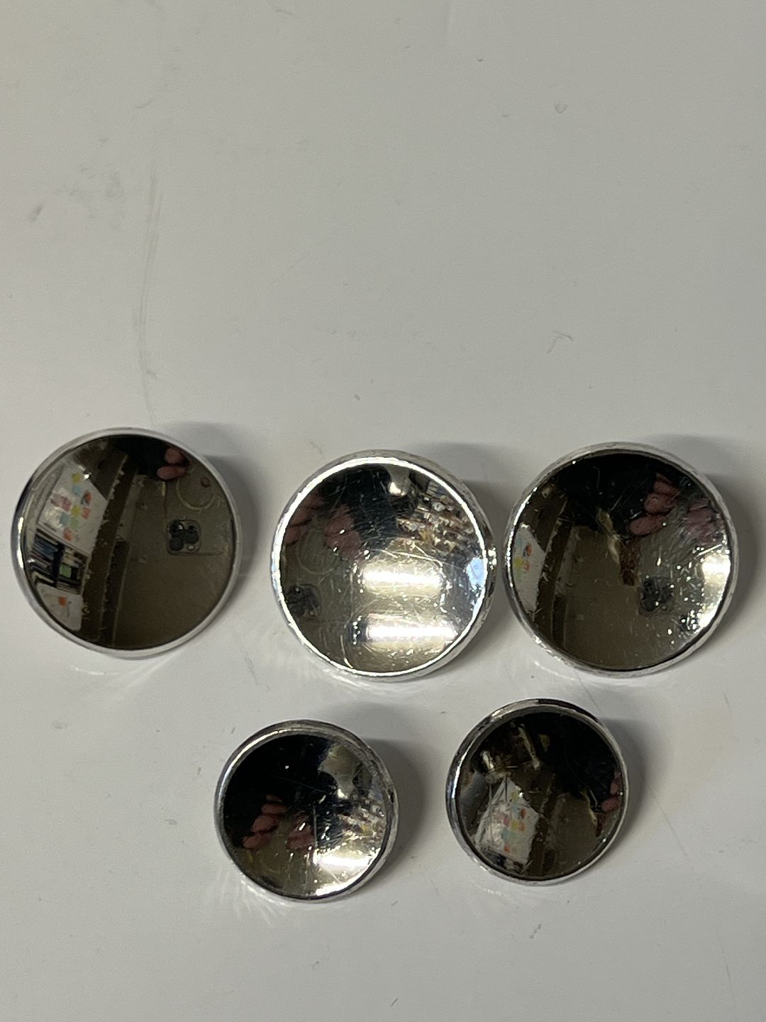 Knapper i sterlingsølv (5stk) Stemplet: Sterling Denmark. Sølvsmed: W.&S.Sørensen. 3 stk Diameter 2 cm. 2 stk Diameter 1,5 cm. Brugt, men velholdt.