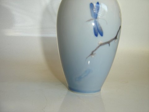 Royal Copenhagen Vase, With Flower branch and dragon fly Decoration number 2301-416 Factory third Height 14 cm.
