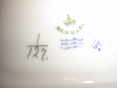 Royal Copenhagen Blue Fluted Plain, Writing set with two house before 1923 Decoration number 1/127 on tray Measures 22 by 15 cm. Lid to the house are with broken fragment and on without lid