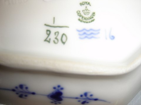 Kongelig Musselmalet Riflet, Firkantet Fad, fra 1898-1923 Dek. nr. 1/230 1. Sortering Mål 15 x 15 cm. Perfekt stand