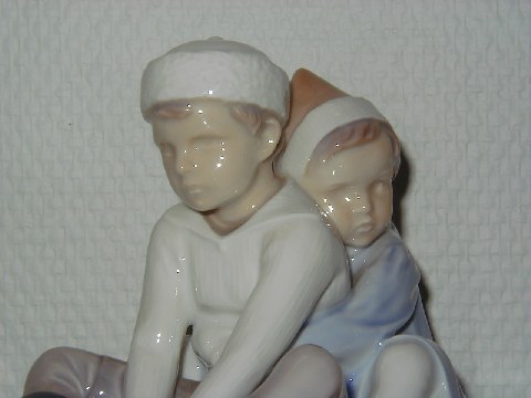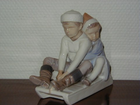 Sjælden Bing & Grøndahl Figur af To Børn på Kælk med dek. nr. 1737, 1. sortering, længde 15 cm., højde 13,5 cm. Perfekt stand.