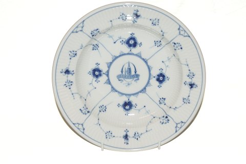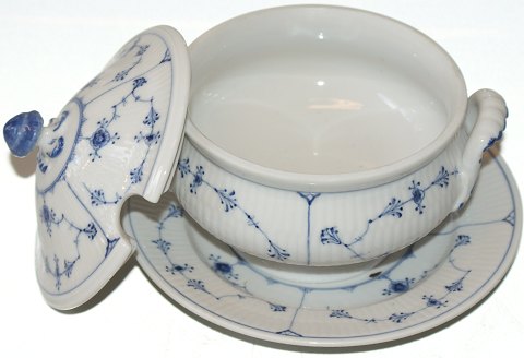 Sjælden Kongelig Musselmalet Riflet, Sauceterrin,rund på fad, model før 1884.