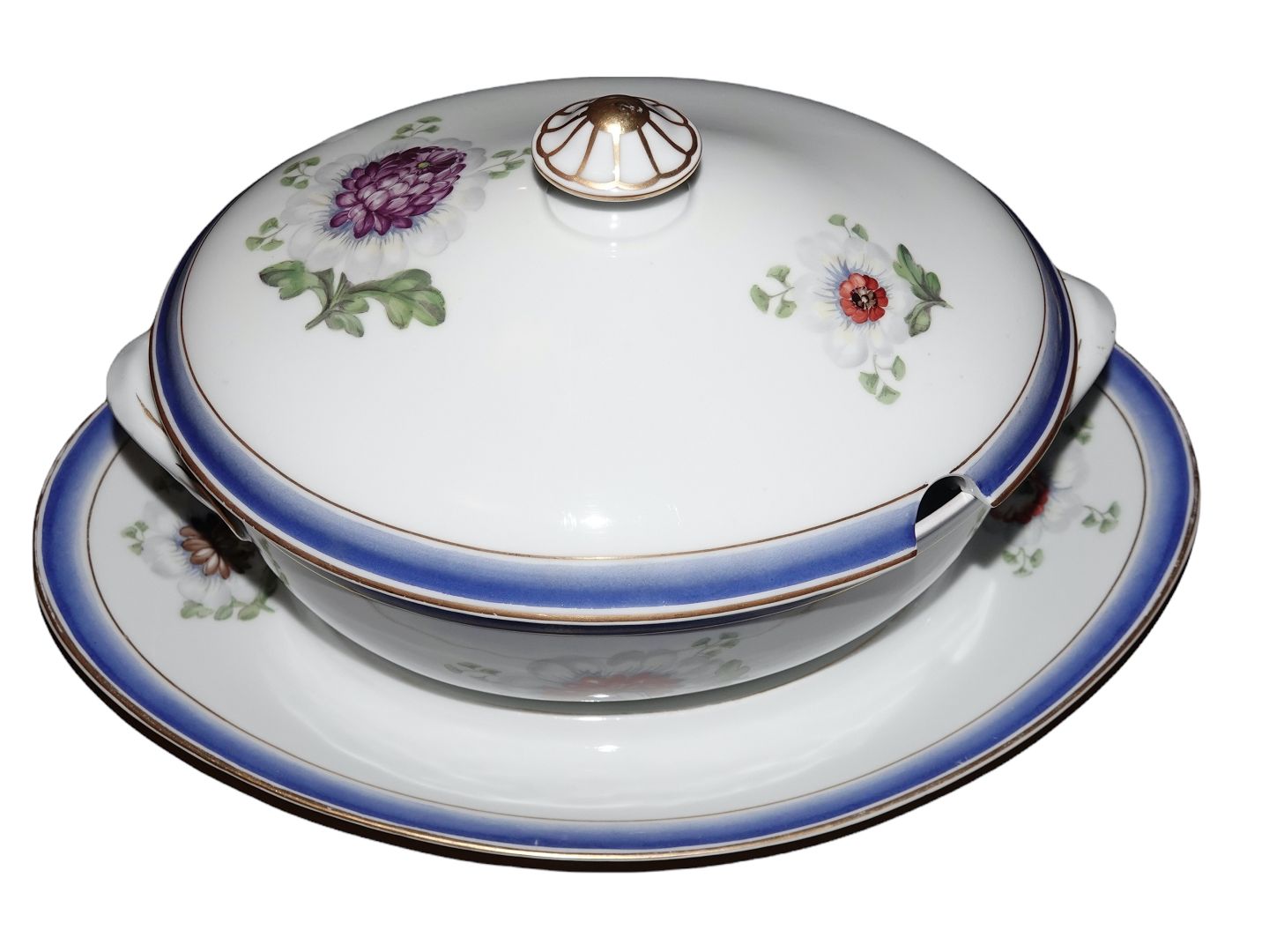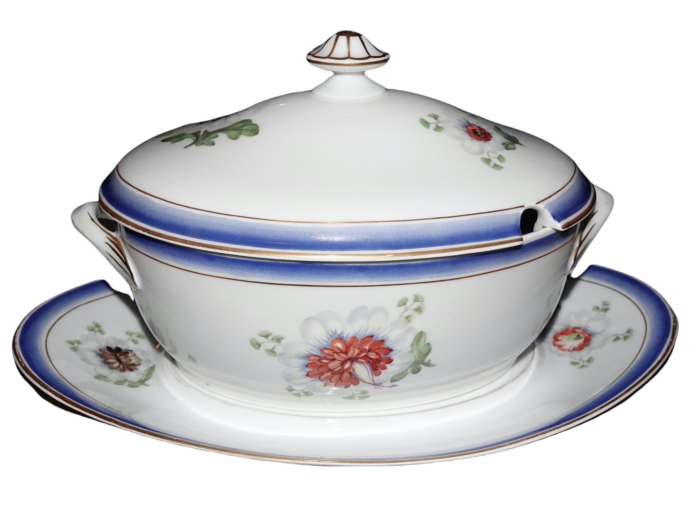 Royal Copenhagen Blue Edge and Flowers, soup tureen with matching platter.