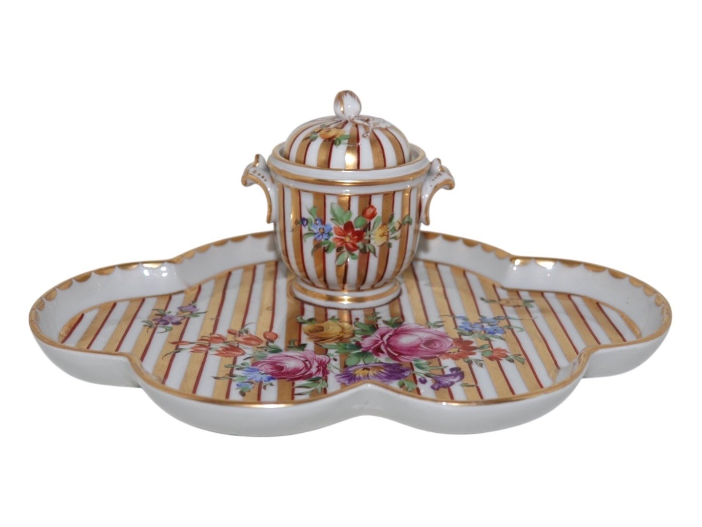 Porcelain most likely from Germany, inkwell with Saxon Flower decoration.