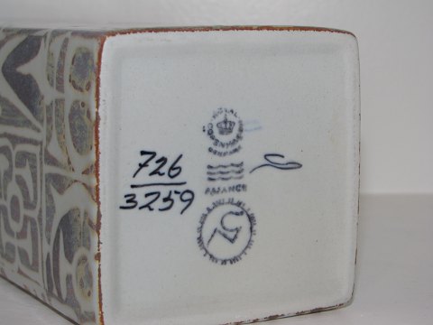 Royal Copenhagen Faience Baca, vase. Designed (and signed) by artist Nils Thorsson. Decoration number 726/3259. Factory first. Height 22.5 cm. Perfect condition with no chips, cracks or repairs.