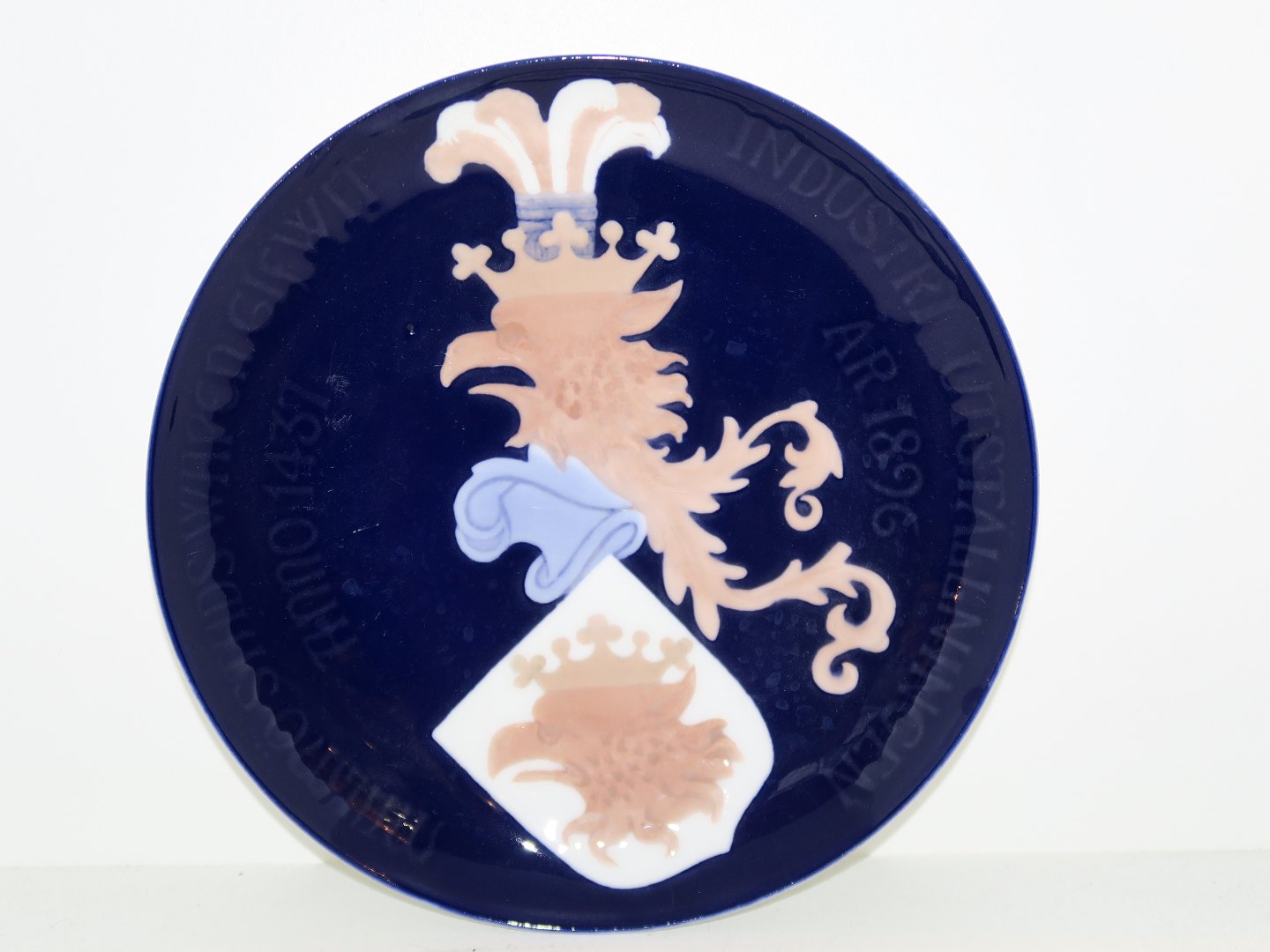 Bing & Grøndahl mindeplatte fra 1896 Industrial udstilling i Malmø. 1. sortering. Diameter 21,0 cm. Perfekt stand uden fejl.