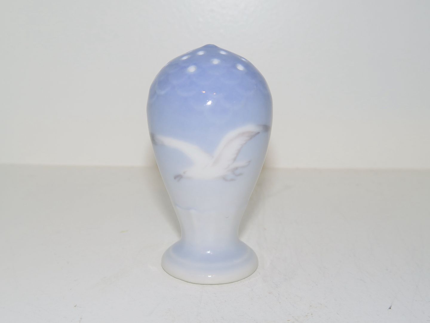 Bing & Grøndahl Måge uden guldkant, saltbøsse med bundprop. 1. sortering. Højde 7,5 cm. Perfekt stand uden fejl.