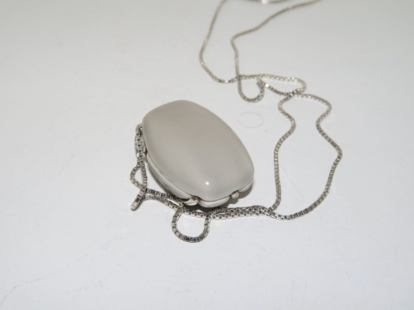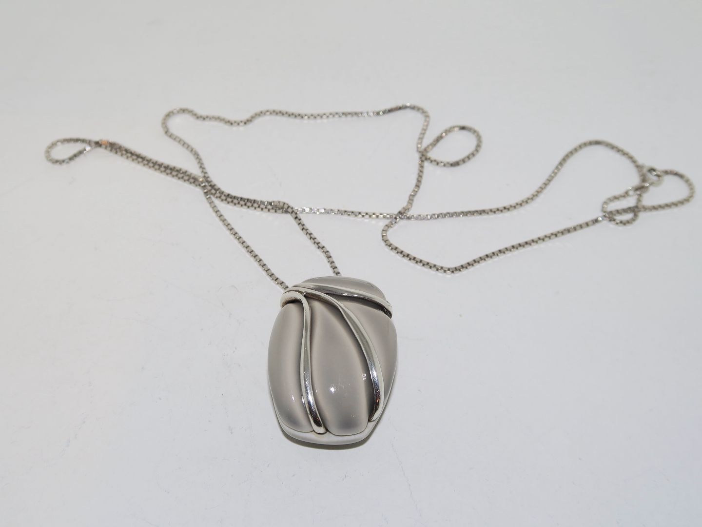 The necklace measures 50.0 cm. The pendant 3.8 by 2.7 cm.