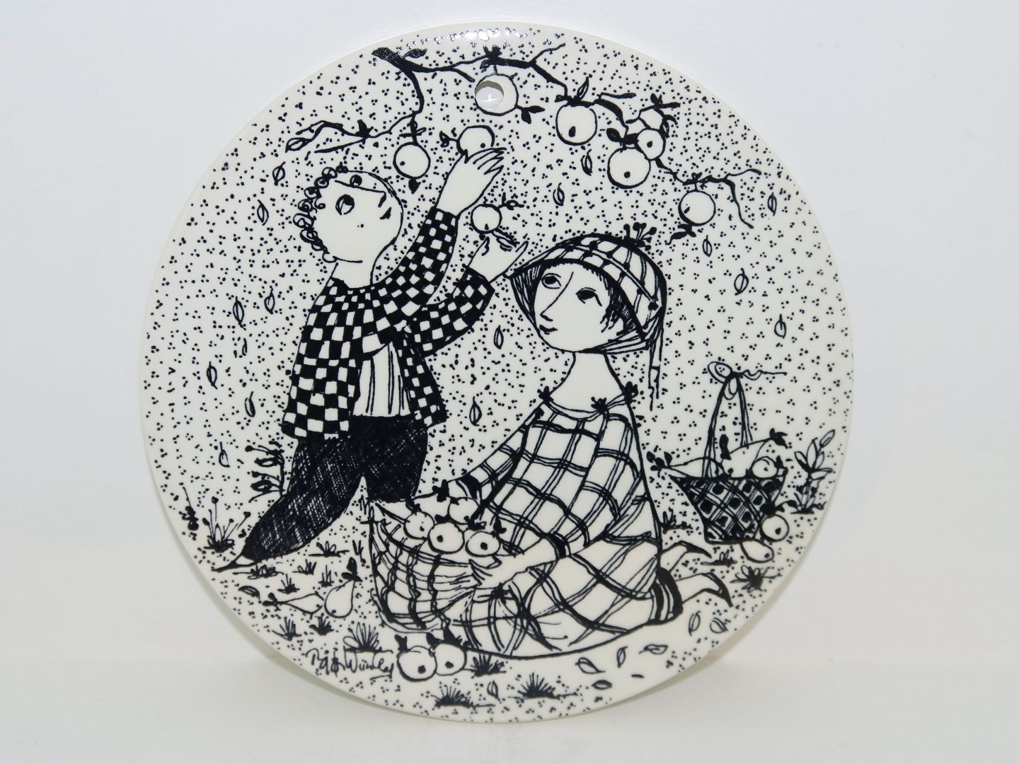 Månedsplatte / smørbrik med sort dekoration, Oktober.