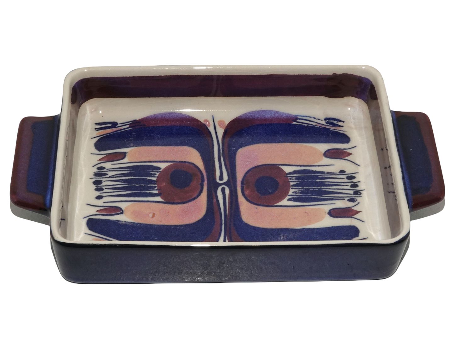 Aluminia Fajance Tenera, firkantet asiet. Designet og signeret af Inge Lise-Kofoed. Dekorationsnummer 135/2790. 1. sortering. Måler 21,0 x 11,8 cm. Perfekt stand uden fejl.