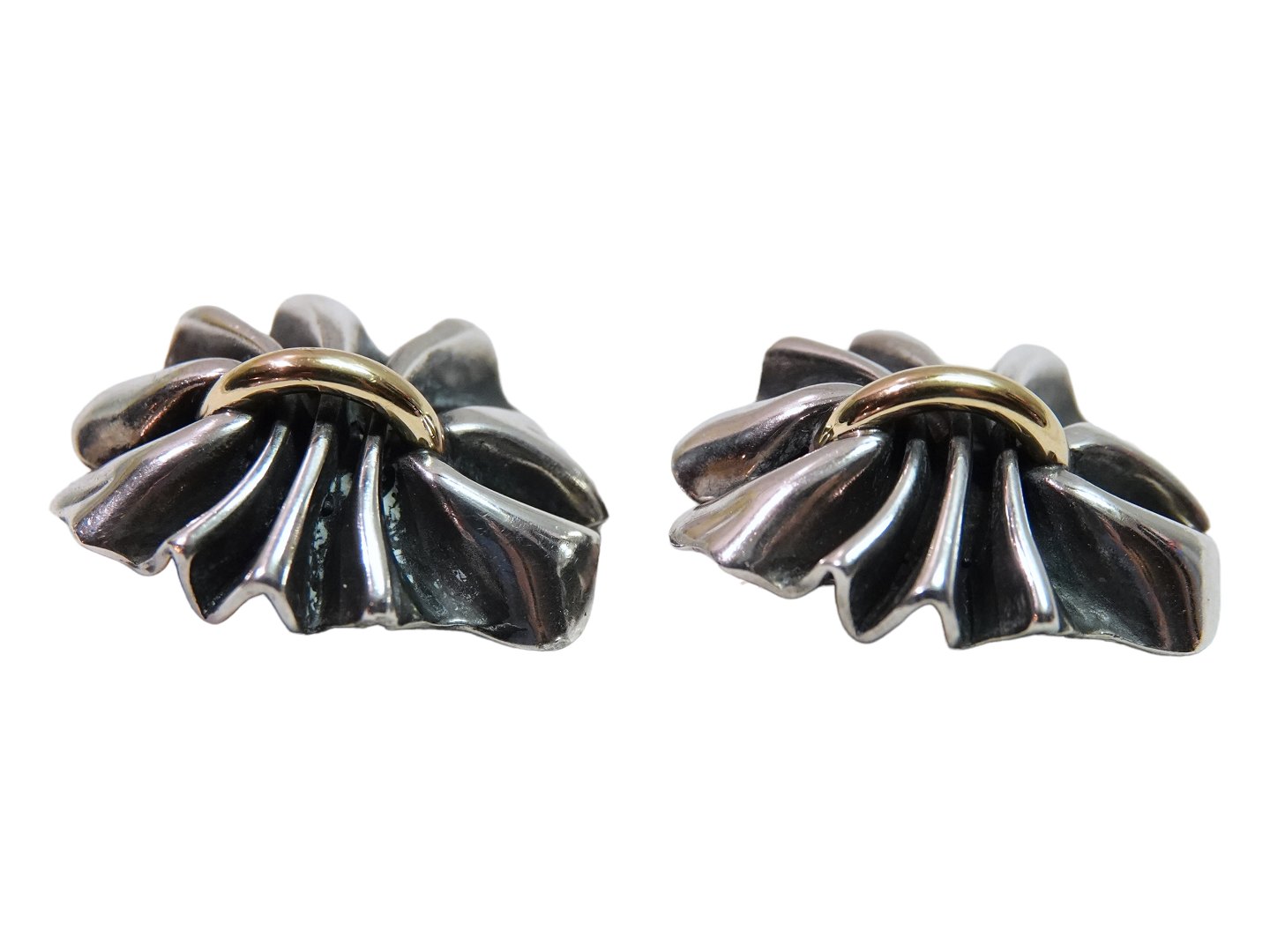 Georg Jensen store øreclips i sterlingsølv og 18 karat guld.