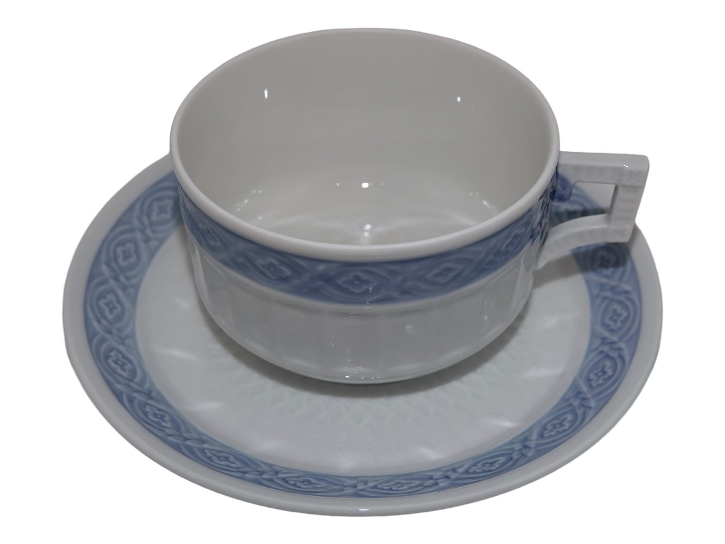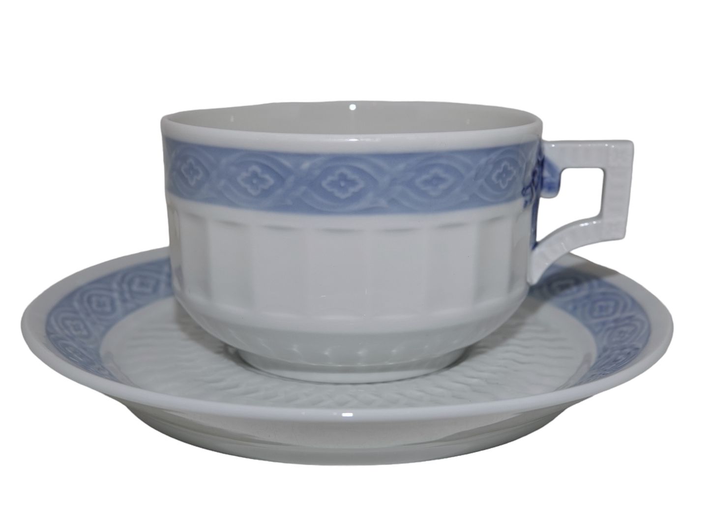 Royal Copenhagen Blå Vifte, ekstra stor morgenkop / chokoladekop med tilhørende underkop.