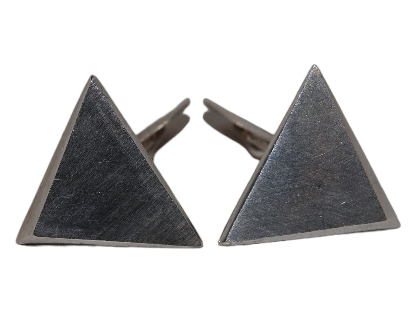 Par trekantede manchetknapper i sterlingsølv fra ca. 1950 til 1960. De er med mat overflade. Stemplet "STERLING NE FROM". Selve manchetten 2,0 x 1,5 cm. Perfekt stand.