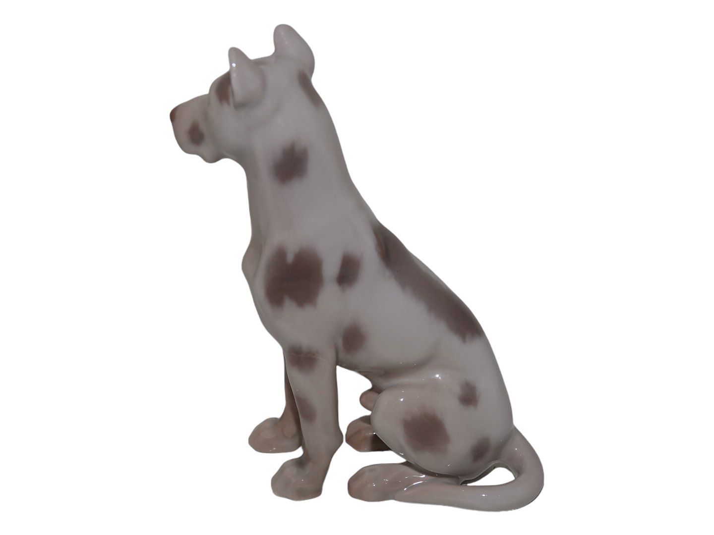 Lille Bing & Grøndahl hundefigur, Grand Danois. Fabriksmærket viser, at denne er fra mellem 1952 og 1958. Dekorationsnummer 2189. 1. sortering. Højde 10,7 cm. Perfekt stand uden fejl.