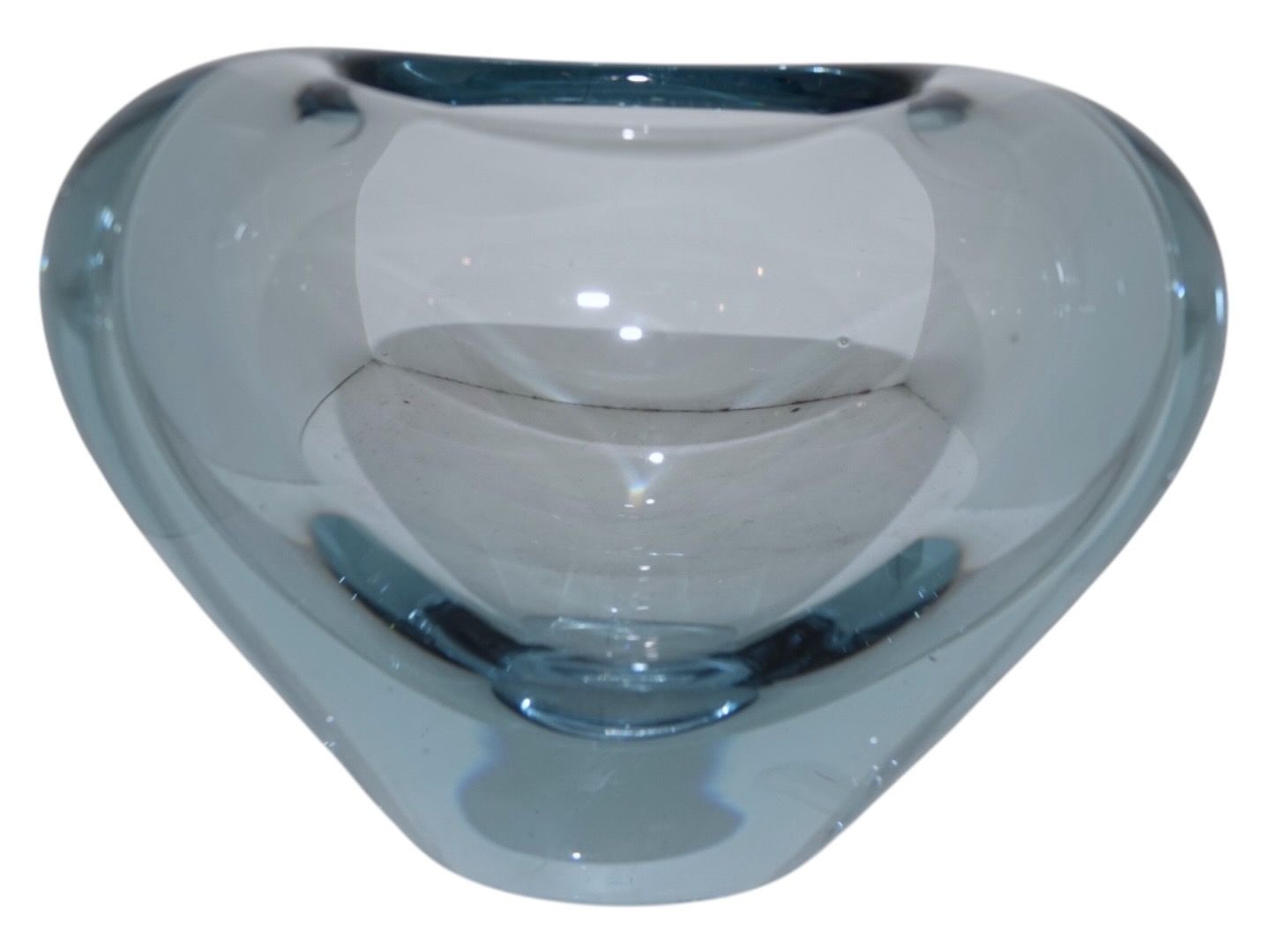 Holmegaard light blue Heart vase designed by Per Lütken. This is fully signed and with year 1959. Length 14.0 cm., height 10.0 cm. Excellent condition.