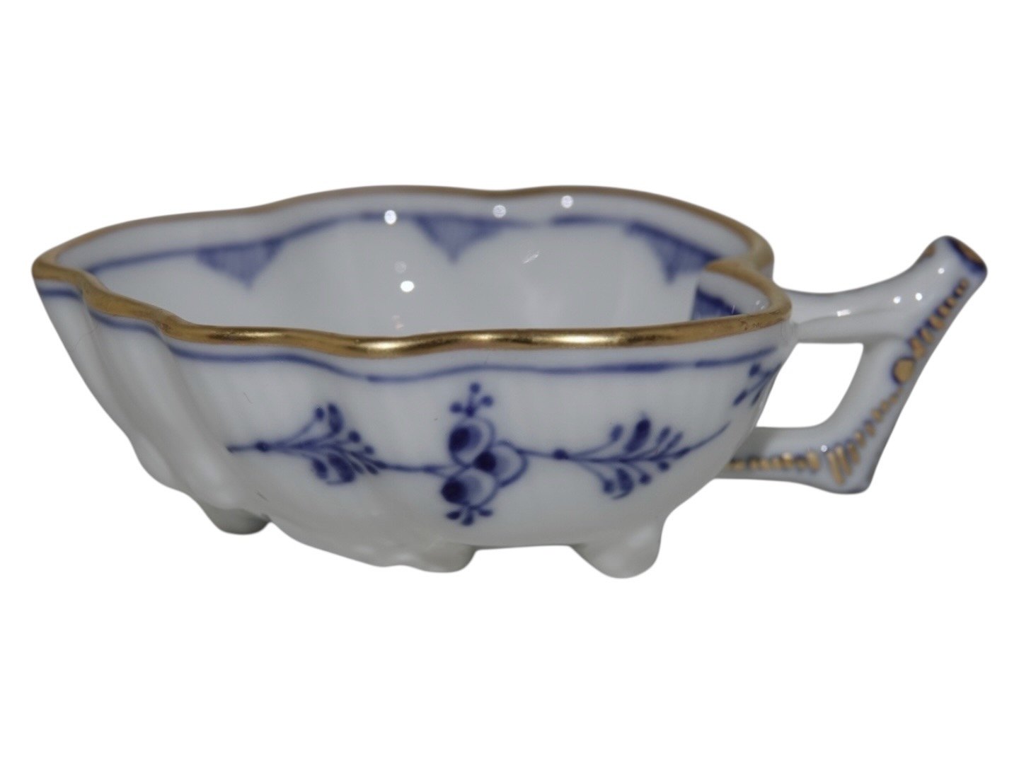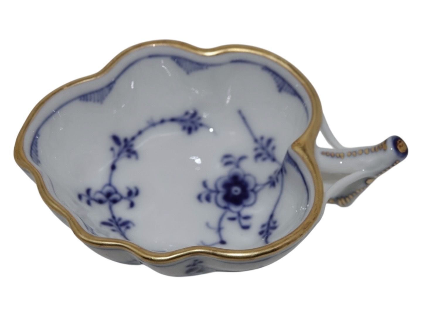 Royal Copenhagen Blue Fluted with gold edge, rare small dish with handle.