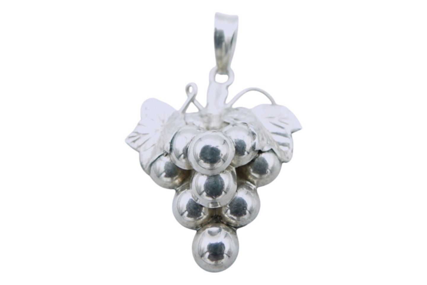 Herman Siersbøl sterling silver grape brooch. Hallmarked "HS 925S". Herman Siersbol was a silversmith in Kastrup from 1948 until around 2000. This is from around 1980. Measures 2.5 by 2.5 cm. Excellent condition.
