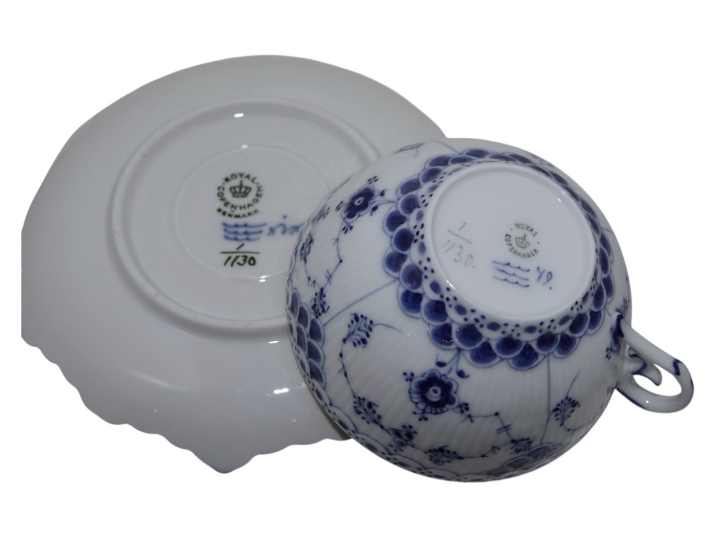 Royal Copenhagen Musselmalet Helblonde, tekop med tilhørende underkop.