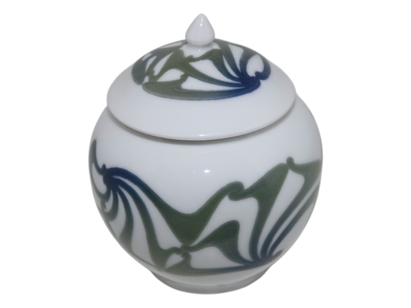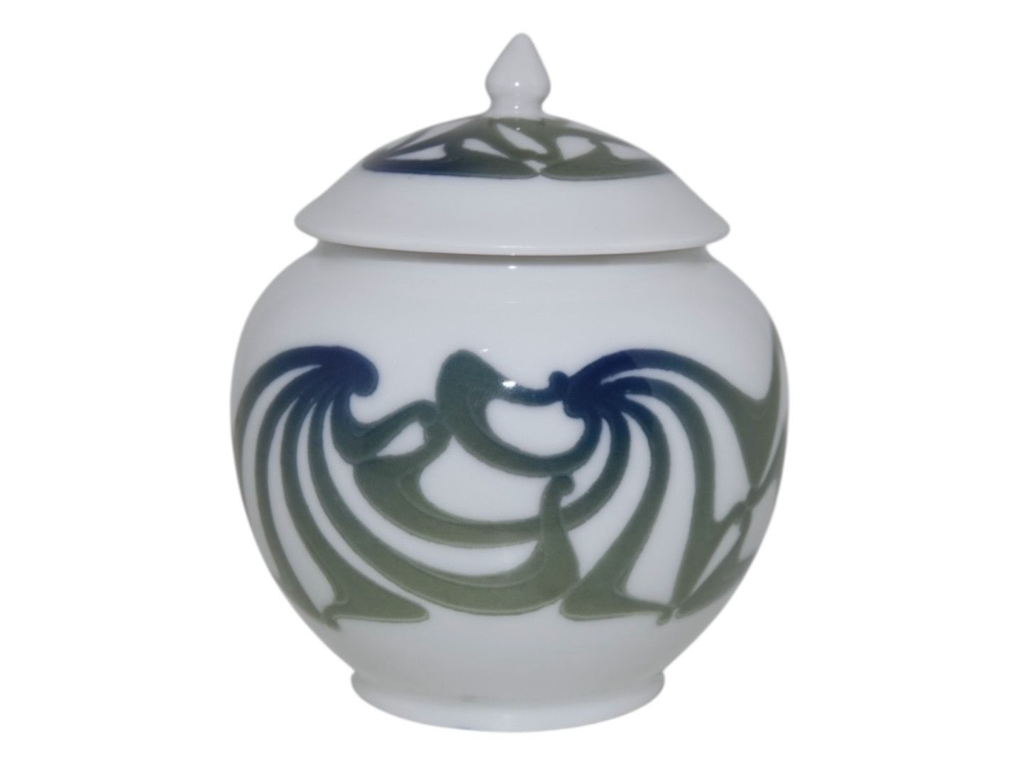Bing & Grøndahl, lille Art Nouveau krukke med grønne og blå farver