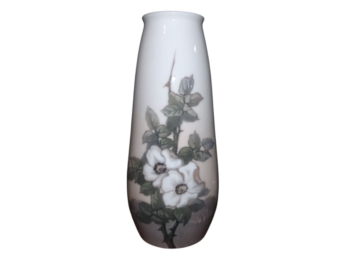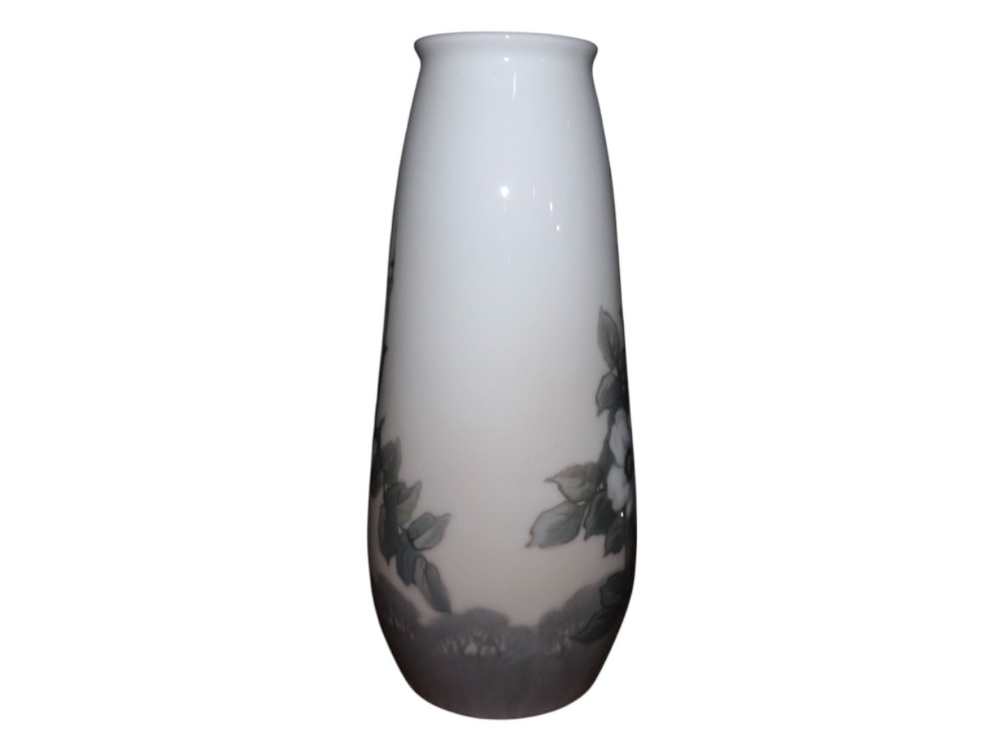 Royal Copenhagen Art nouveau vase dekoreret med hvide roser. Vasen er dekoreret hele vejen rundt.
