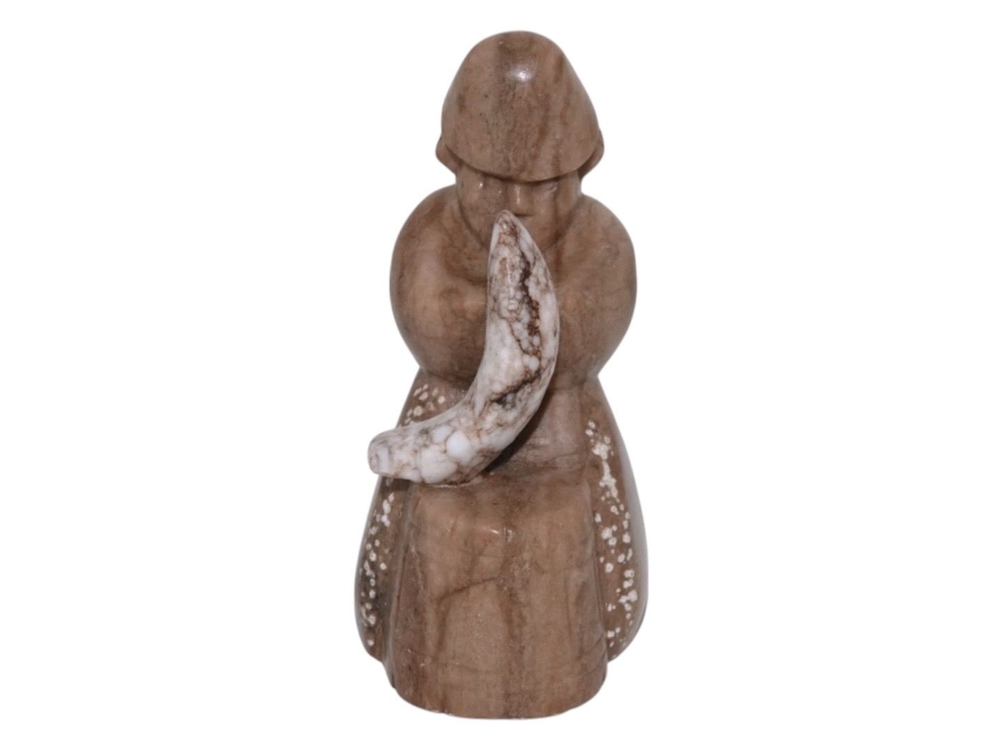 Greenland, small soap stone figurine, man with a fish. Most likely a newer piece. Height 9.0 cm. Excellent condition.