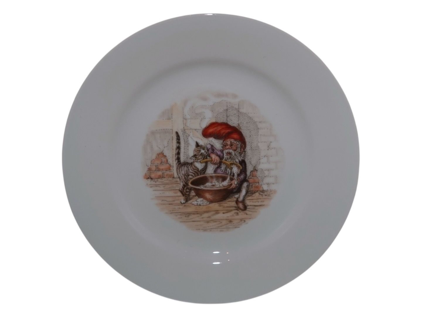 Royal Copenhagen julestel, Kagetallerken med julenisse og kat.