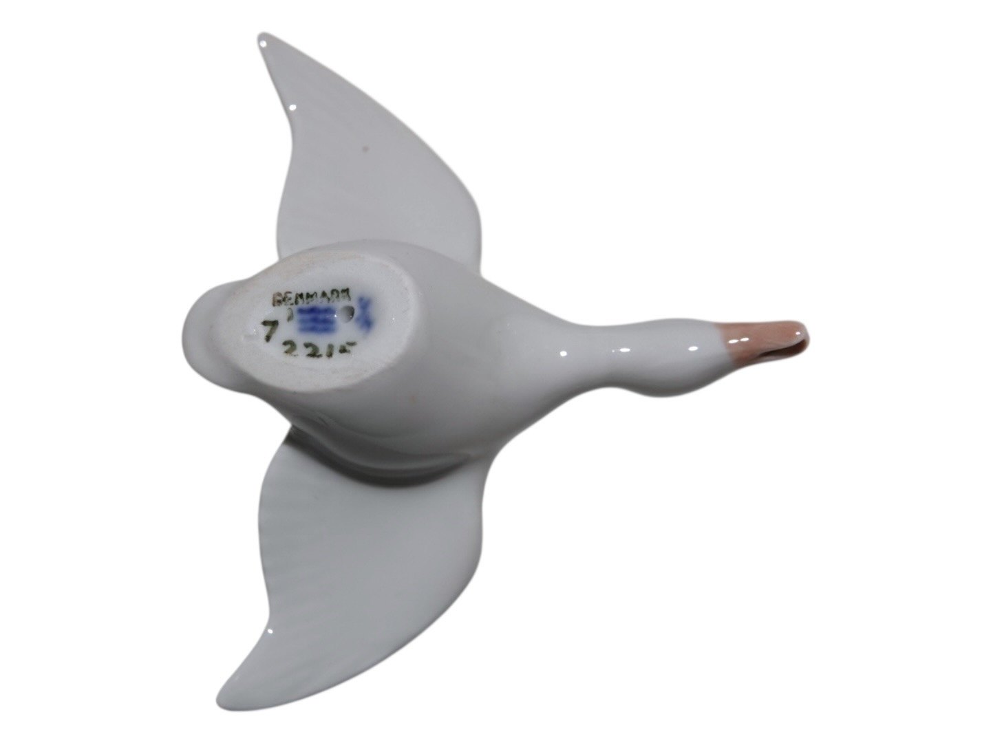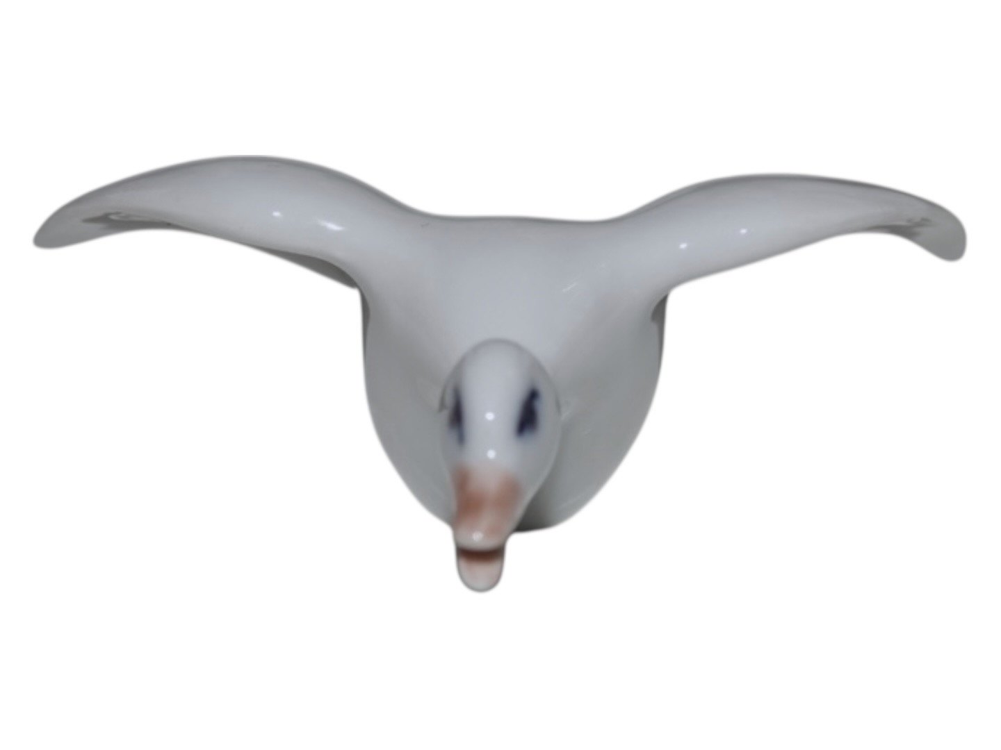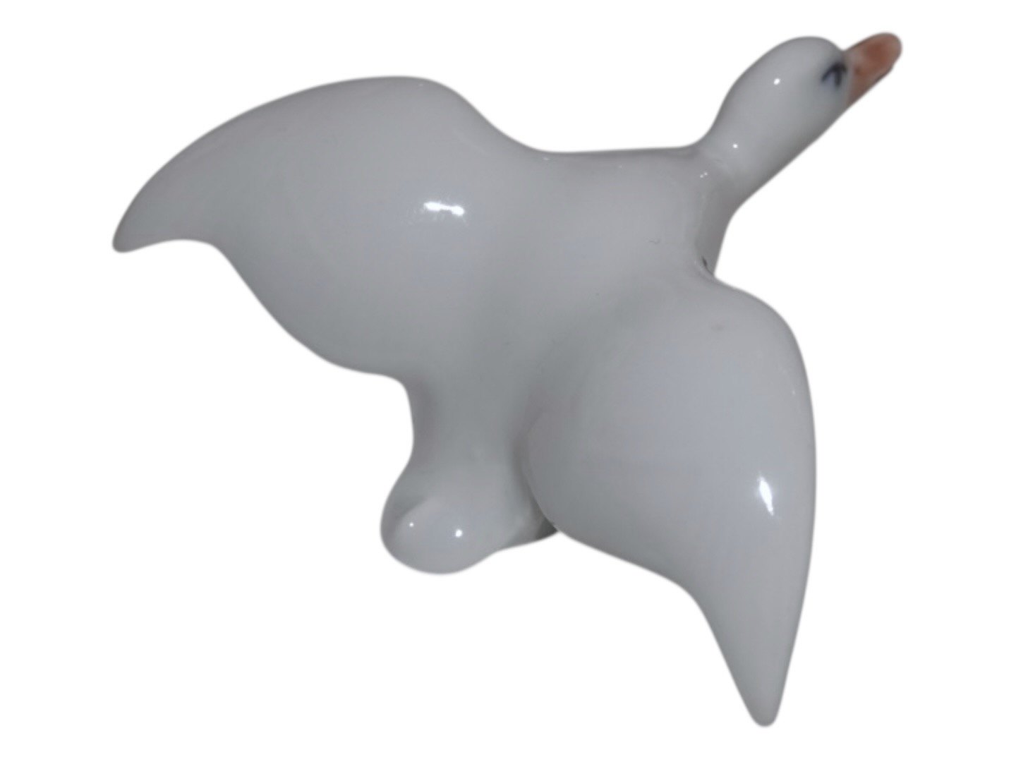 Royal Copenhagen miniature fugle figur, hvid flyvende and. Dekorationsnummer 7/2215. 1. sortering. Måler 7 x 6 cm. Perfekt stand uden fejl.