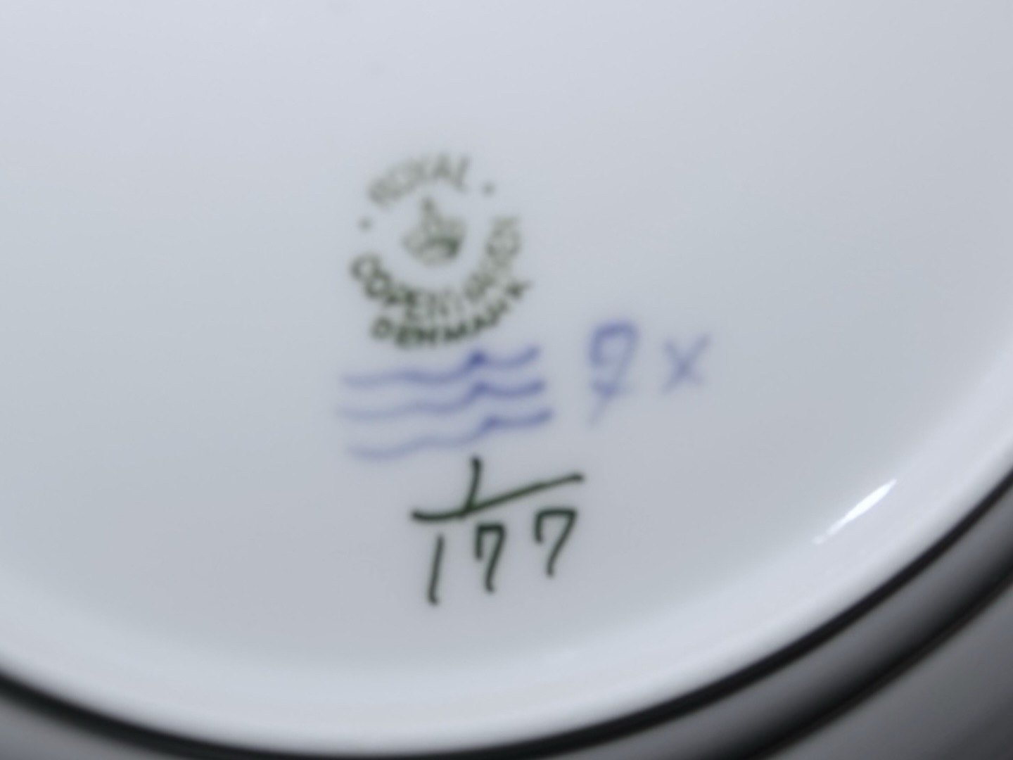 Royal Copenhagen Musselmalet Riflet, frokosttallerken. Dekorationsnummer 1/177. Diameter 22,5 cm. Perfekt stand uden fejl.