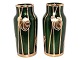To små Jugend (Art Nouveau) grønne glas vaser med gulddekoration fra omkring 1900 til 1920.