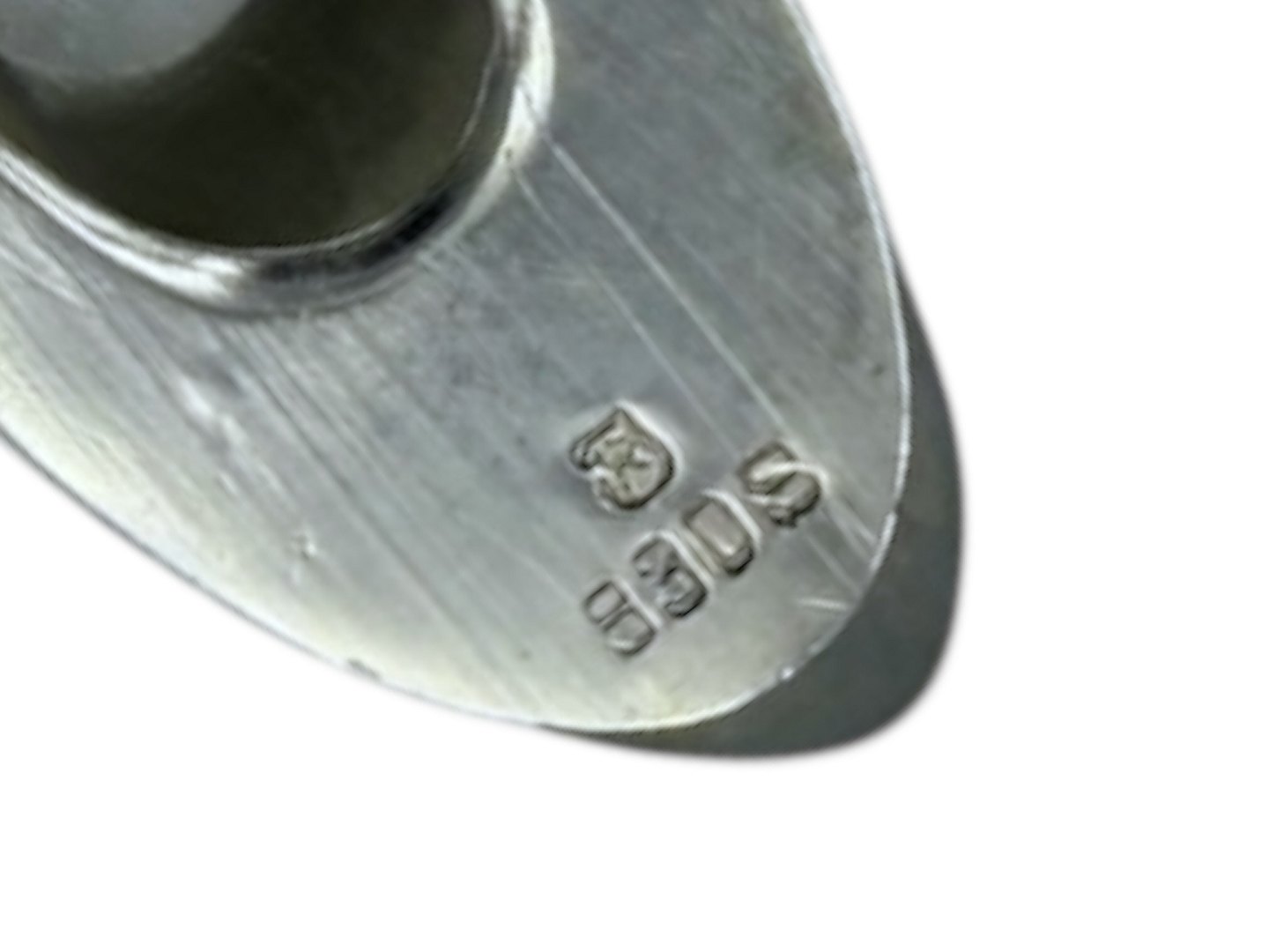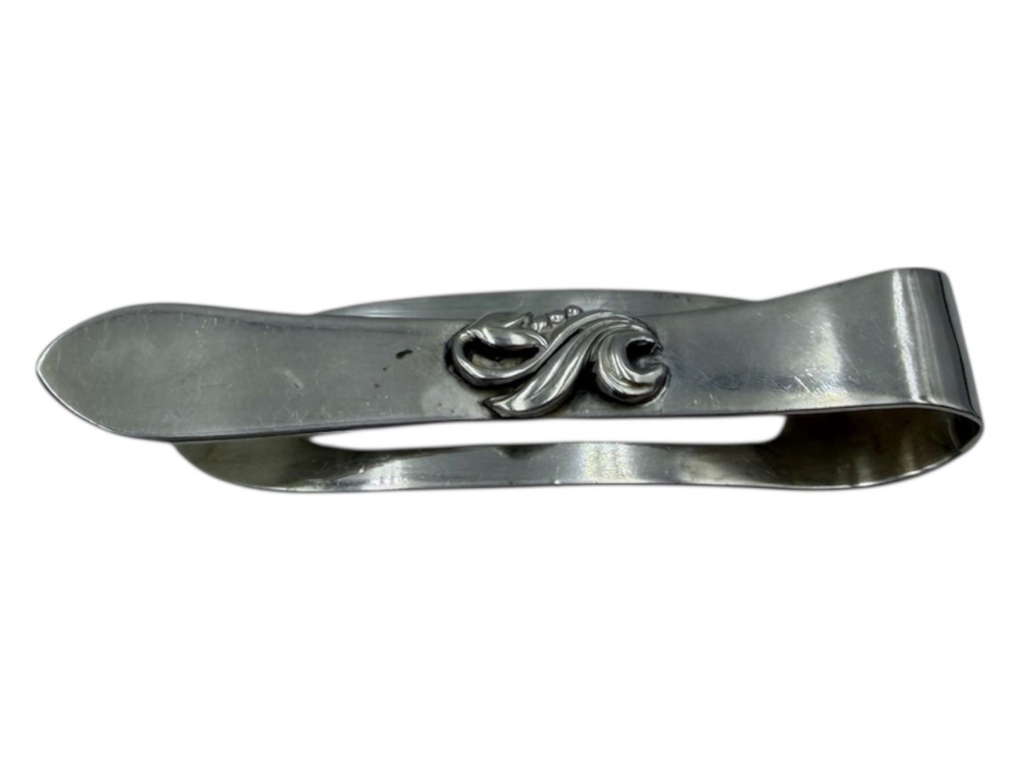 Bred sølv slipsenål fra ca. 1950 til 1960. Stemplet "830S" samt utydeligt mestermærke. Længde 6,1 cm., bredde 1,5 cm. Fin og velholdt stand.