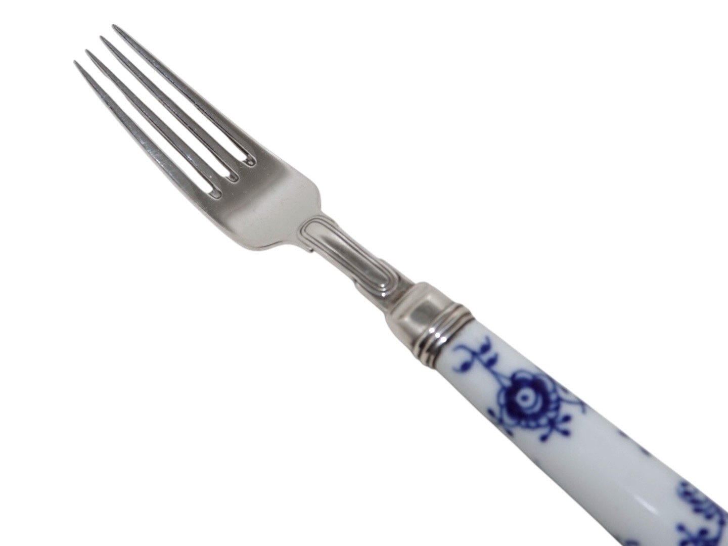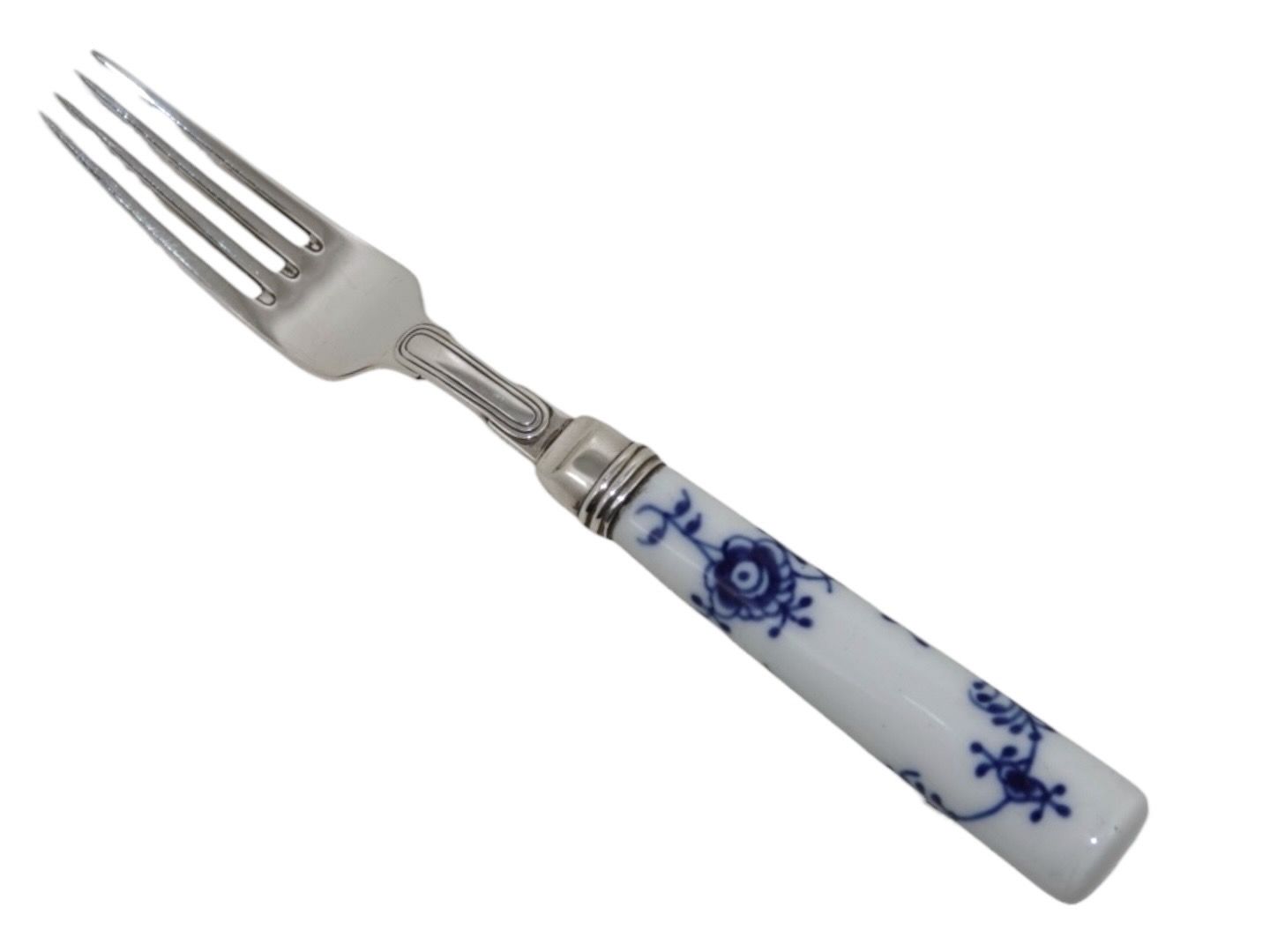 Royal Copenhagen Musselriflet Riflet, sjælden gaffel monteret med Anton Michelsen sterlingsølv.