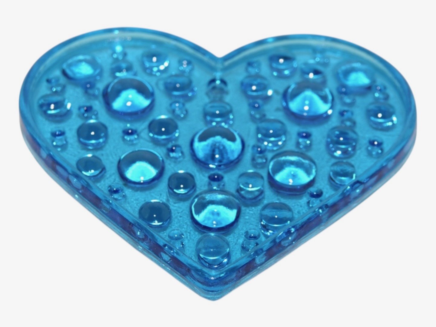 Glasværk fra Sverige, solfanger i form af blåt hjerte fra 1970'erne eller 1980'erne.