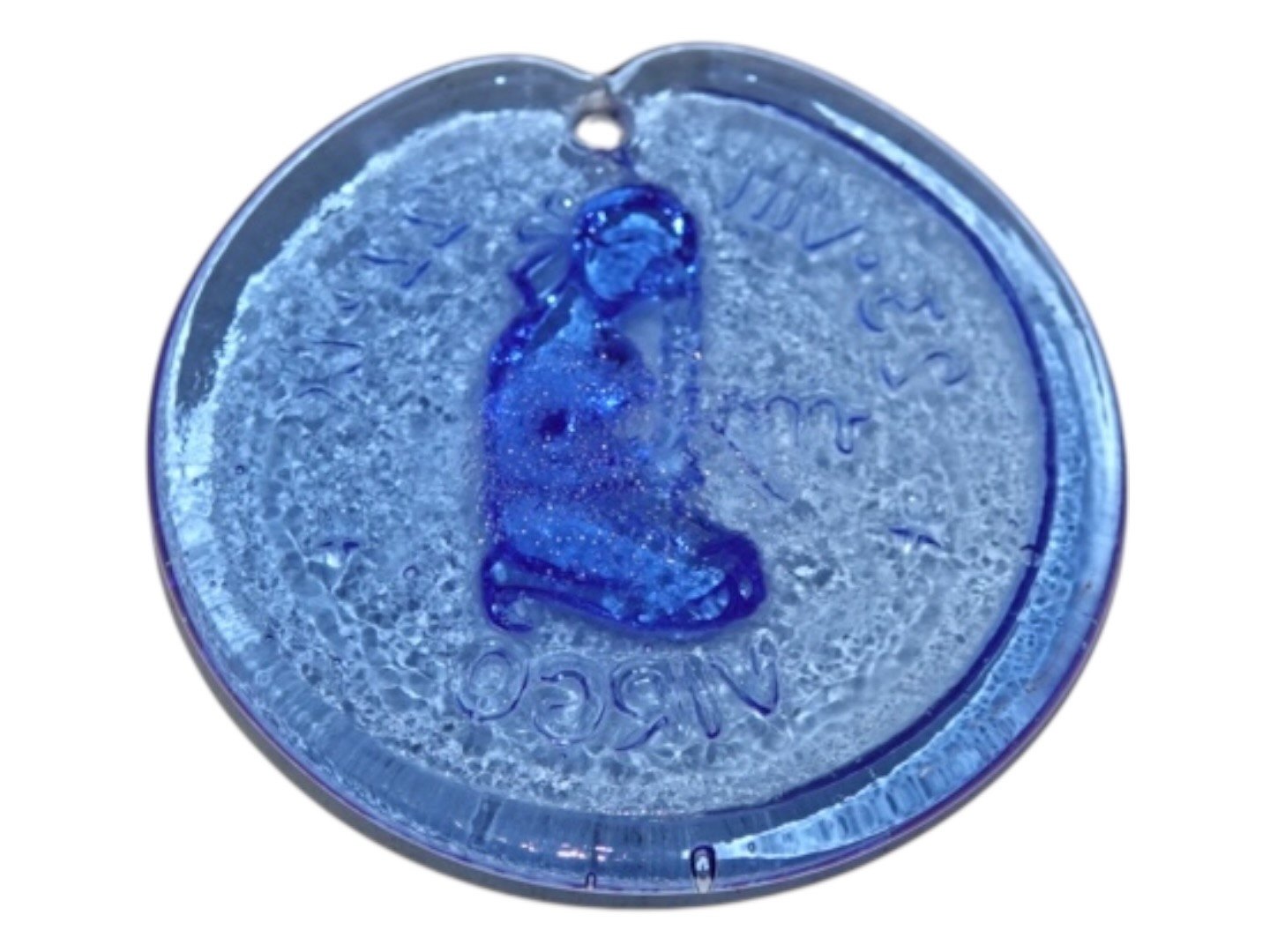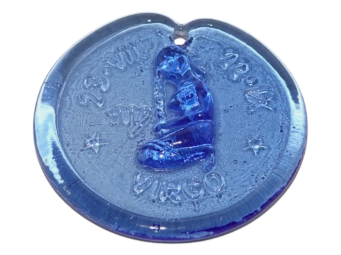 Holmegaard, lille blå solfanger med stjerneteget Virgo (Jomfru) fra 1970'erne.