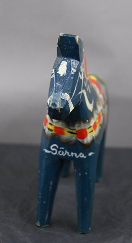 Blue Dala horse with "Särna" over the front legs.