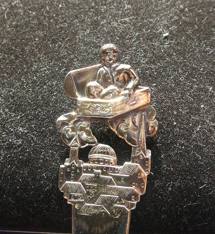 H.C. Andersen barnebestik i forgyldt tretårnet sølv med Den flyvende Kuffert.