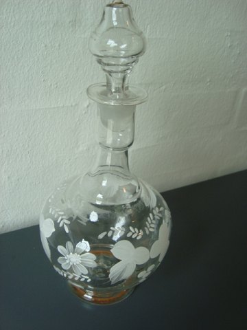 Dekoreret med hvid emalje dekoration i form af blomster og blade.