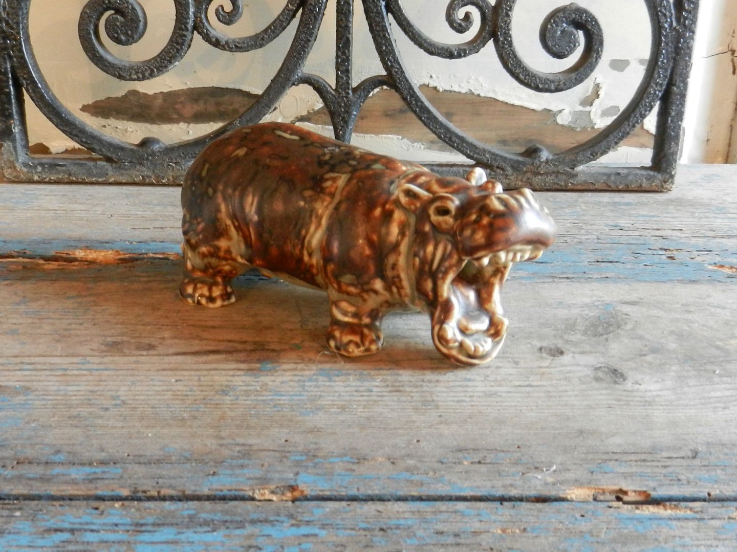Royal Copenhagen, stentøjs flodhest af Knud Kyhn i Sung glasur.
