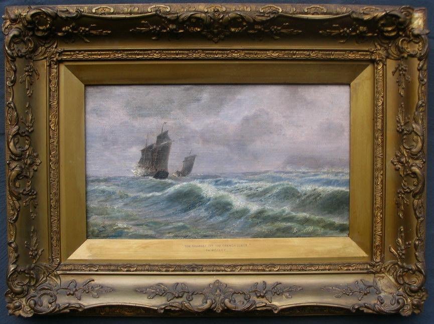 Møller, Thorvald (1842 - 1925) Danmark: The Channel of the French Coast. Olie på lærred/plade. Sign.: Monogram Th. M. 85. 23 x 39 cm.