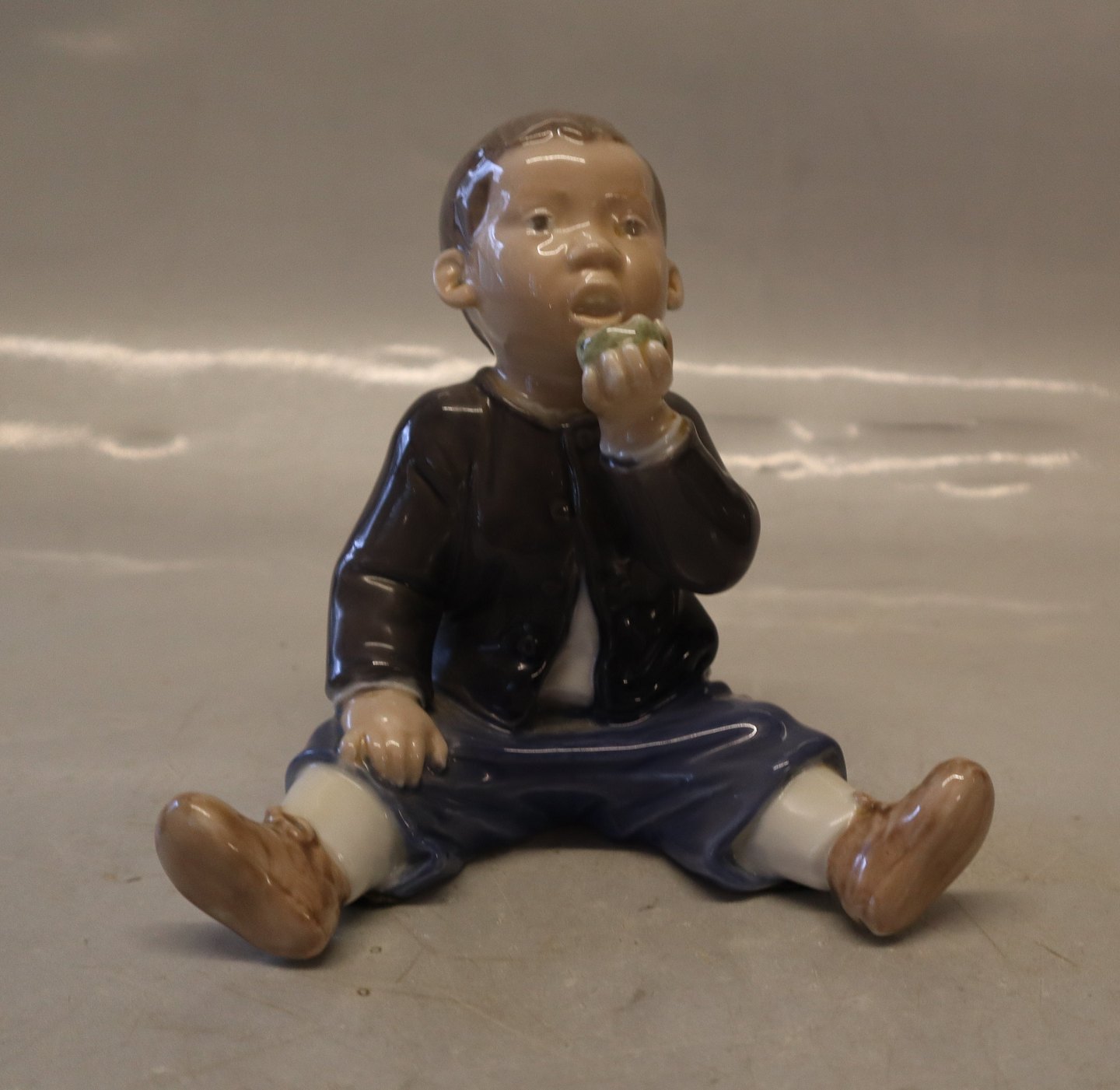Kgl. figur 4680 Kgl. Dreng spiser æble, John Galster 12,5 cm fra Royal Copenhagen I hel og fin stand
