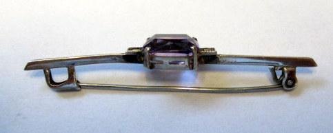 Slipsenål i sølv med ametyst, o. 1920. L.: 5,8 cm. Ingen synlige stempler.