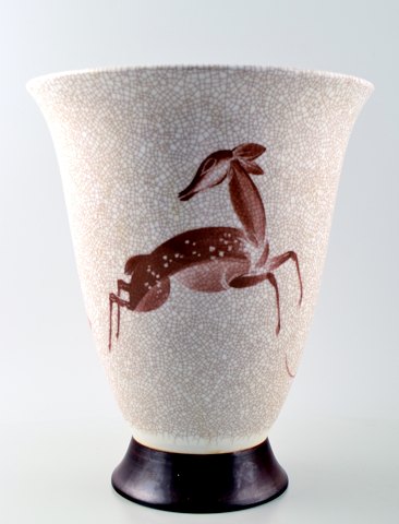 Art deco krakelé vase af porcelæn, B&G, Bing & Grøndahl, dekoreret med et rådyr.