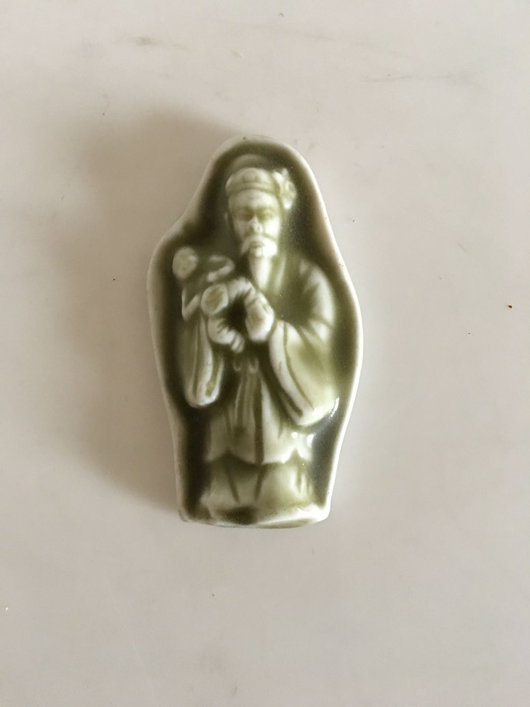 Royal Copenhagen Stentøjs relief Figur af Japensk munk med barn. Prøve glasur. Måler 9cm.