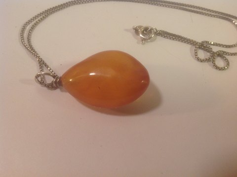 Rav vedhæng med sølvkæde 925s