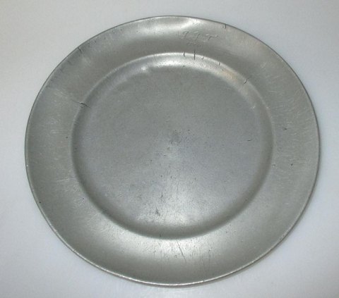 Tin tallerken, 1770. Dia.: 21 cm. Med utydelige stempler.