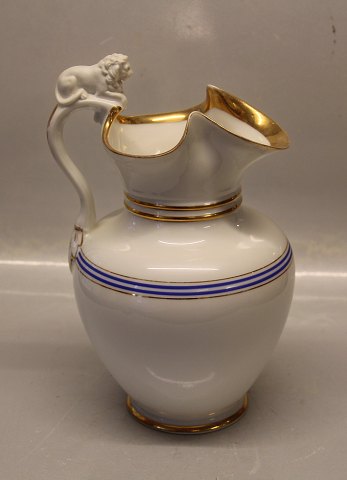 Bing & Grøndahl I Antik Løvekande med guld og blå linnier 25.5 cm med intakt låg fin og hel stand. Chokoladekande, Vandkande Vinkande Mælkande 1855-1890